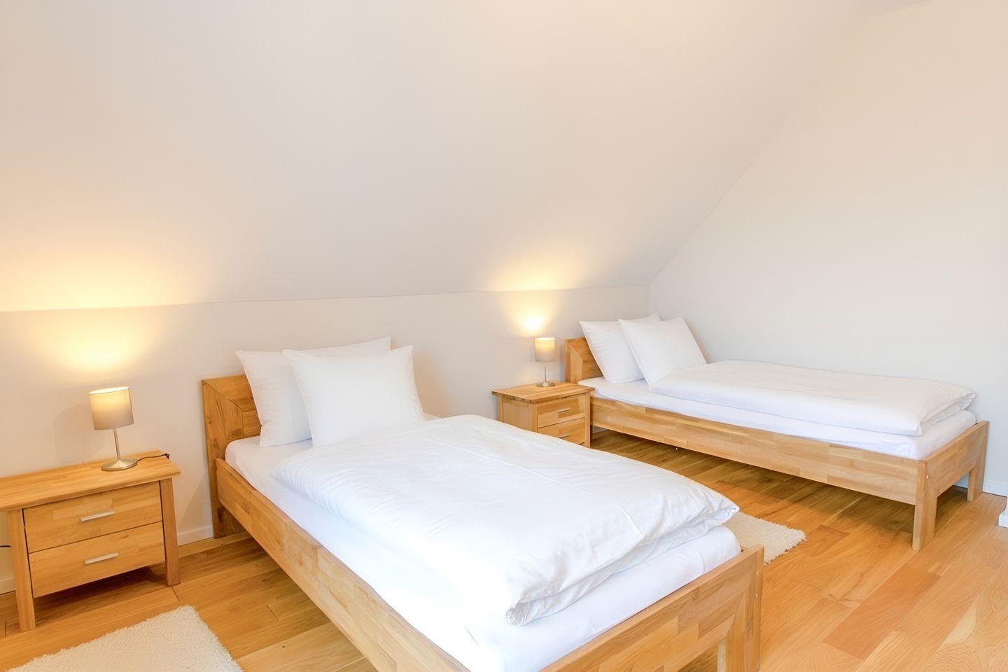 Die Ausstattung des Ferienhauses ist modern und familiengerecht konzipiert. Mit vier Schlafzimmern und insgesamt acht Schlafmöglichkeiten eignet sich das Haus hervorragend für Familien, befreundete Paare oder kleine Gruppen. Zwei Badezimmer, jeweils mit Dusche und Fenster ausgestattet, gewährleisten Komfort und Privatsphäre auch bei voller Belegung. Fußbodenheizung sorgt das ganze Jahr über für angenehme Temperaturen, und das allergikergeeignete Haus bietet ein optimales Raumklima für empfindliche Gäste.