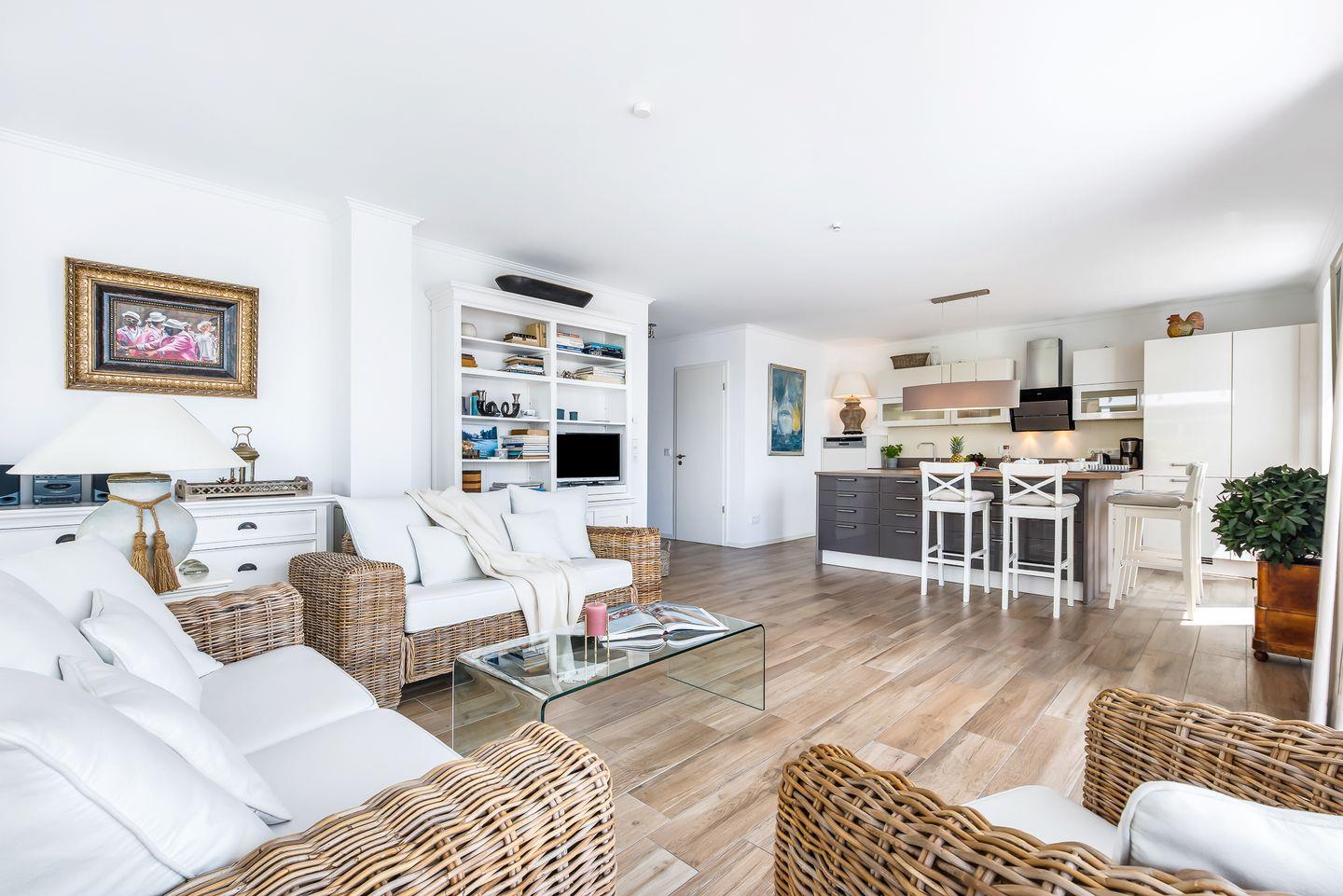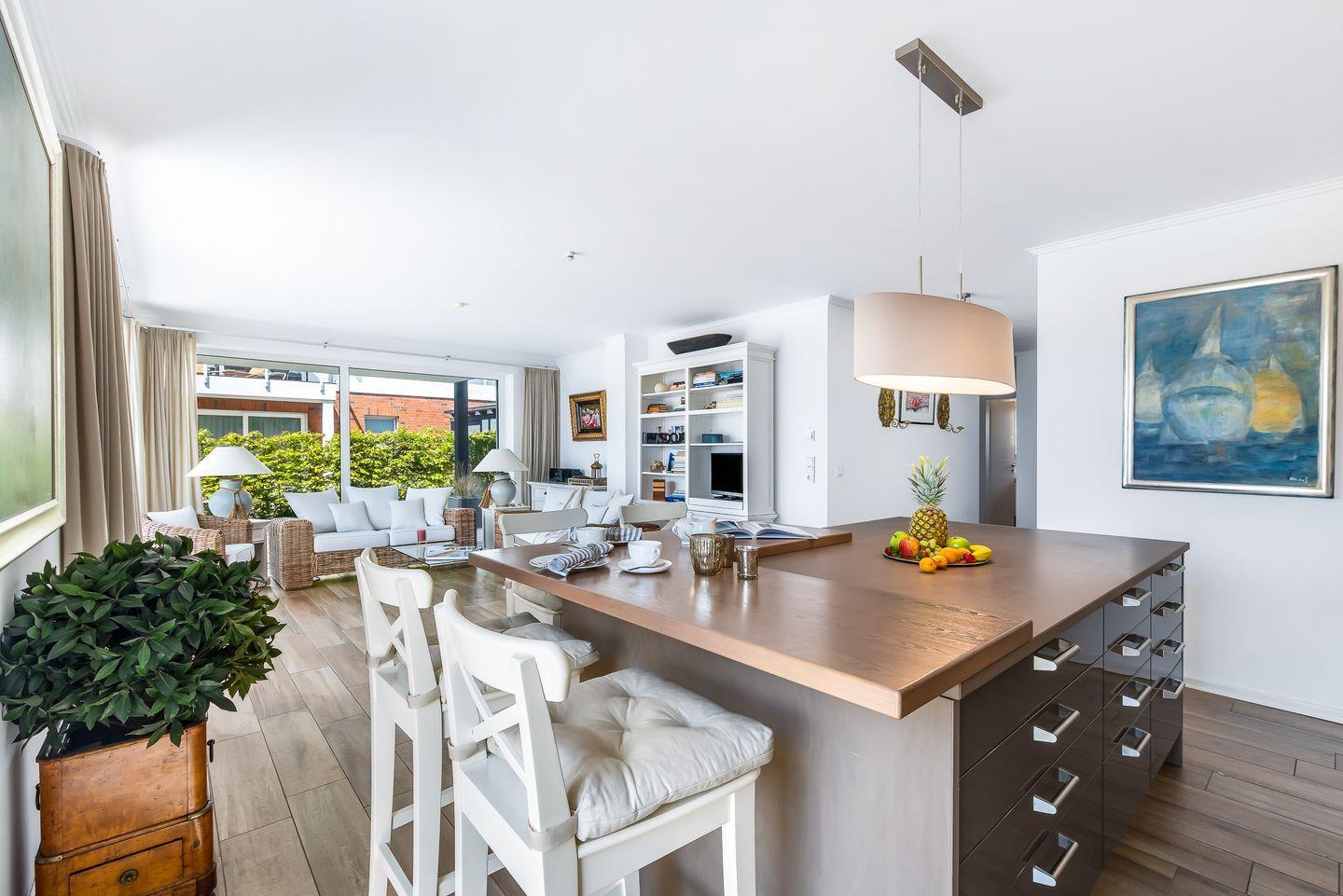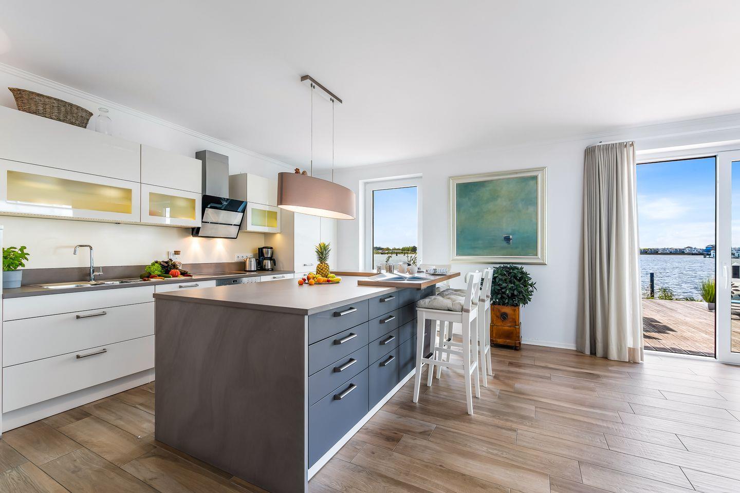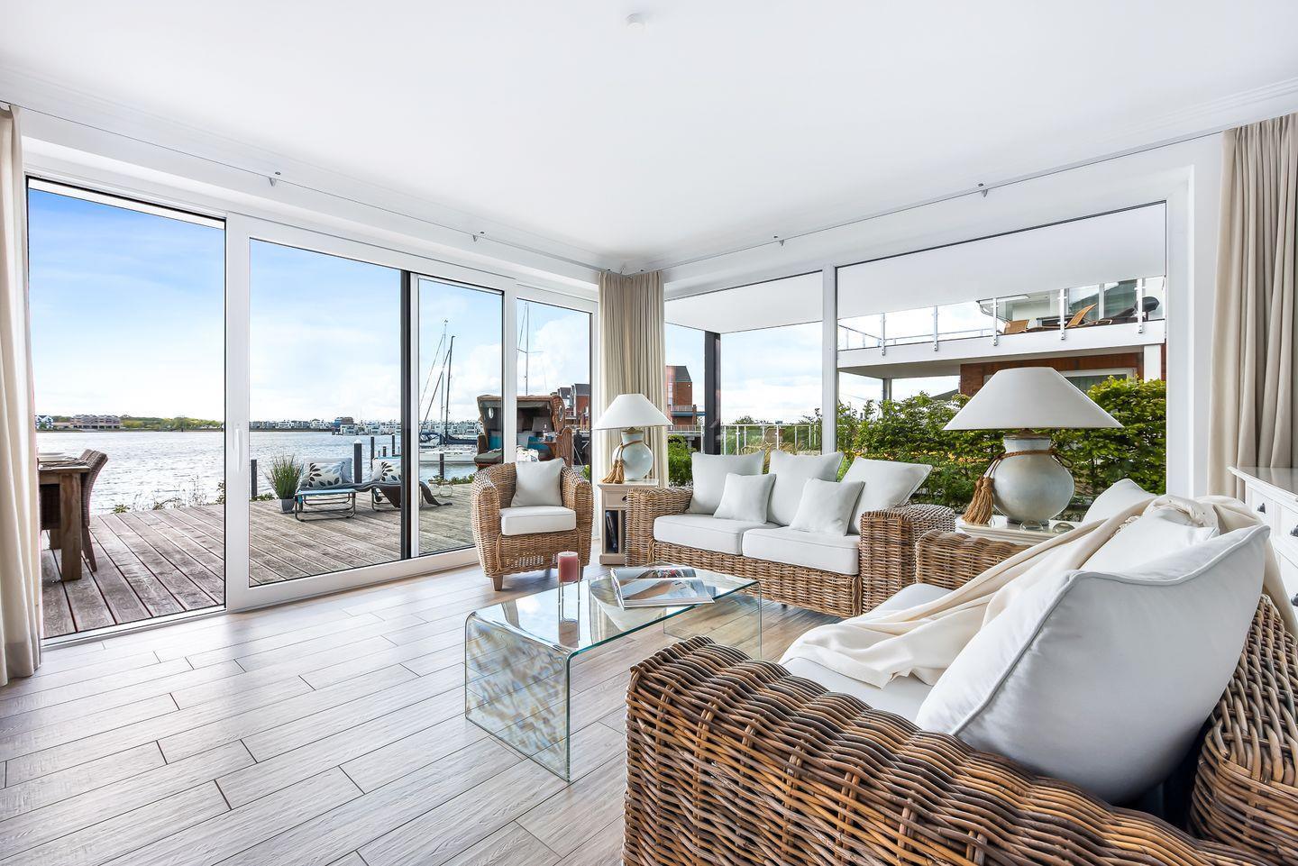 Sie öffnen die Terrassentür, hören die Wellen, riechen das Salz in der Luft. Die Möwen kreisen über dem Hafen, während das Licht durch die großen Fenster ins Wohnzimmer fällt. Maritimer Stil, helle Farben und natürliche Materialien machen aus dem Wohnbereich Ihr neues Lieblingszimmer.
