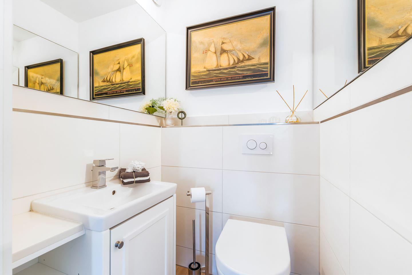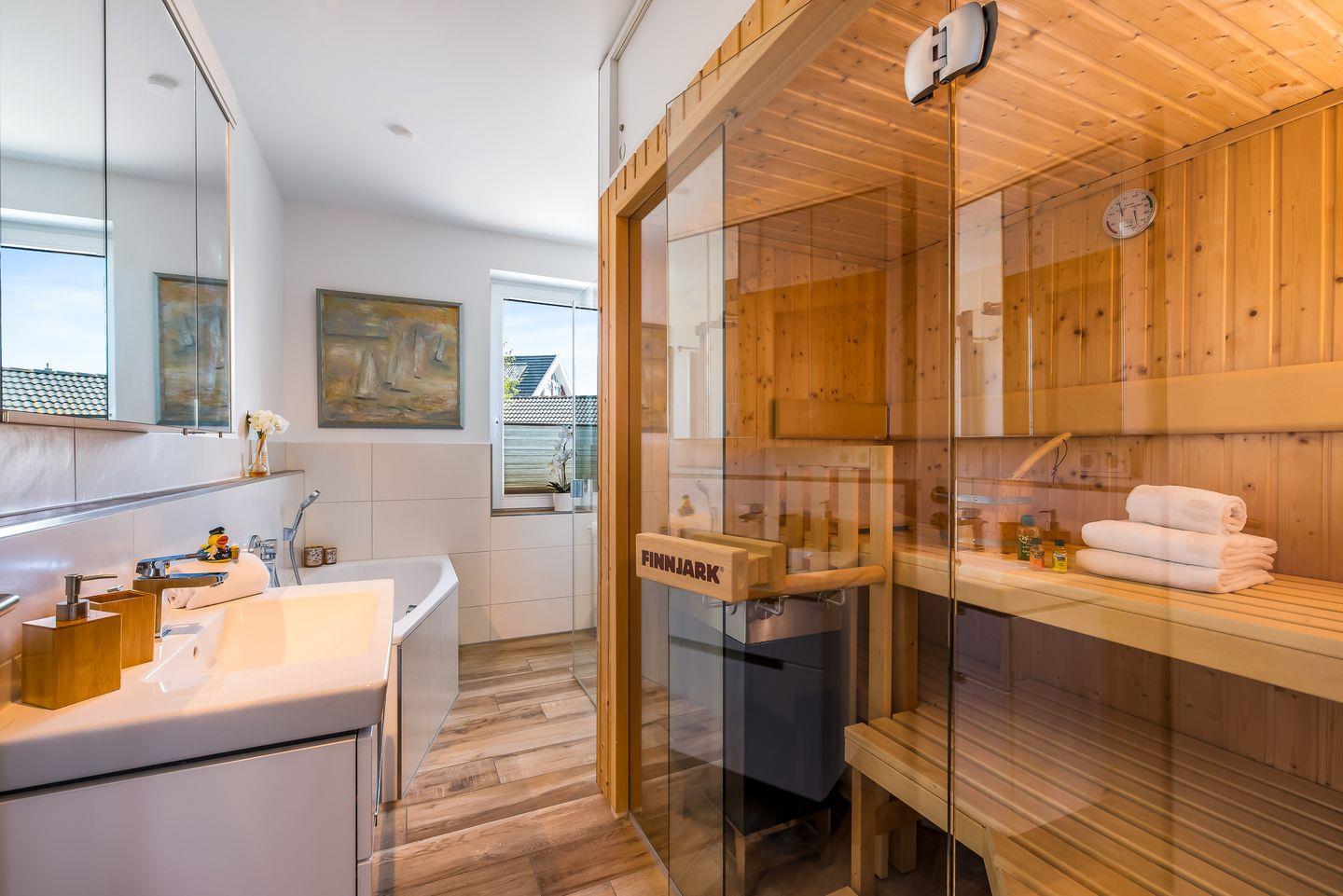 Die Sauna duftet nach Holz, warmes Wasser füllt Ihre Wanne. Nach einem langen Spaziergang am Wasser genießen Sie Ihre ganz private Wellnesspause. Dusche, Badewanne, Sauna und ein separates WC sorgen für Entspannung und Komfort.