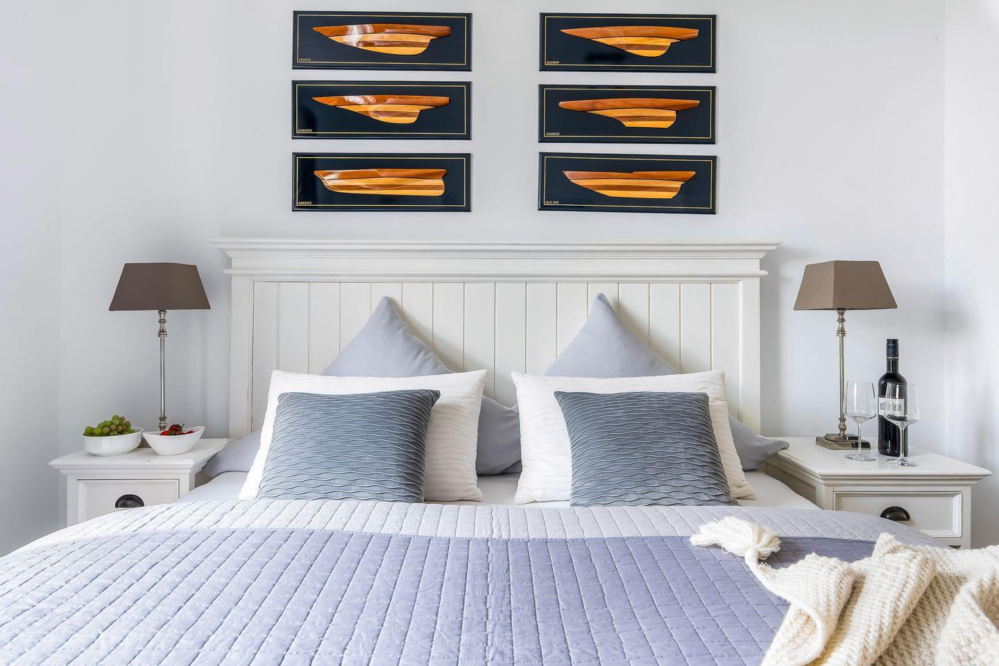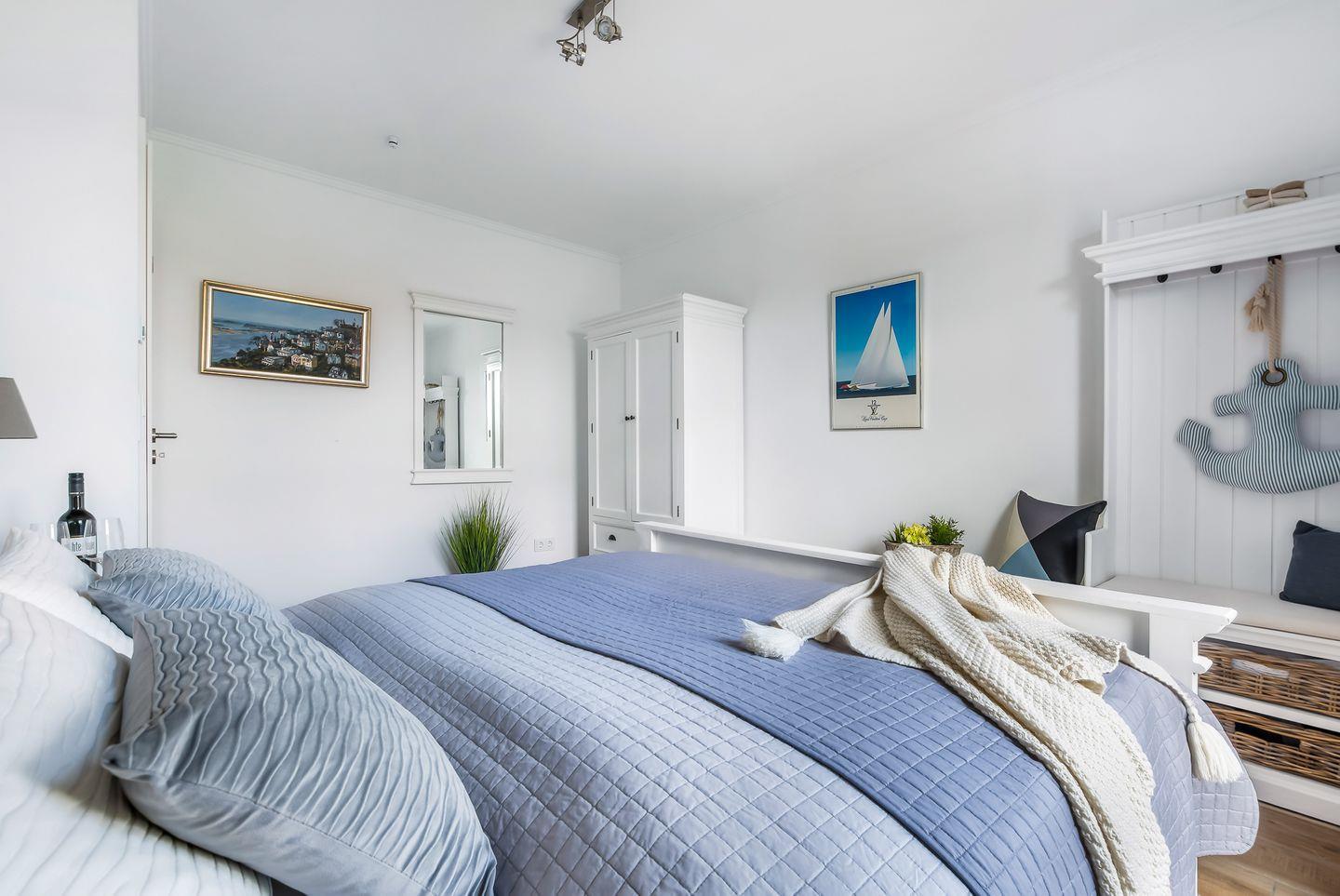 In den Schlafzimmern erwarten Sie weiche Kissen, viel Ruhe und das beruhigende Gefühl, der Küste ganz nah zu sein. Jedes Zimmer ist mit einem Doppelbett ausgestattet und im schlichten Strandhausstil gehalten. Hier schlafen Sie tief und träumen weit.