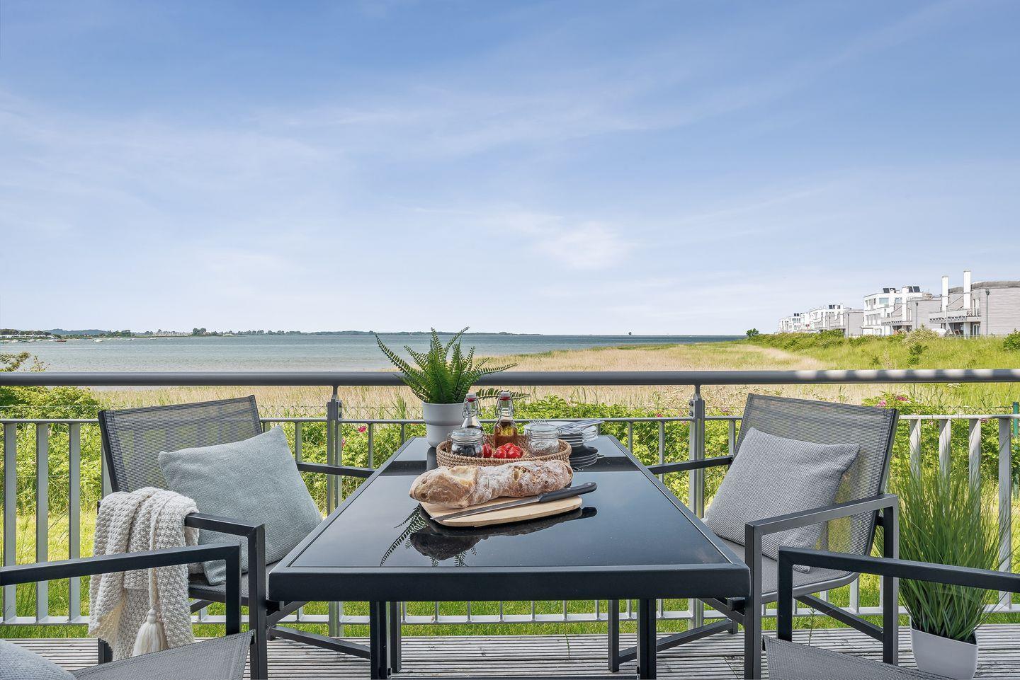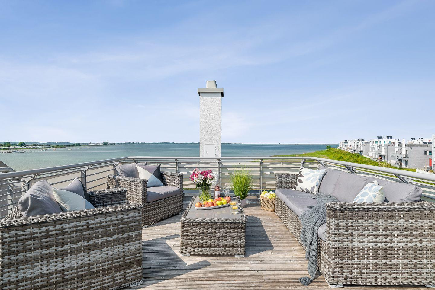 Ob Frühstück mit Blick aufs Schilf, ein gutes Buch am Nachmittag oder ein Sundowner mit weitem Horizont. Bellevue schenkt Ihnen gleich drei Terrassen. Die große Dachterrasse mit Loungemöbeln ist das Highlight. Hier genießen Sie freie Sicht auf die Schlei und den Yachthafen. Ein echter Lieblingsplatz für jede Tageszeit.