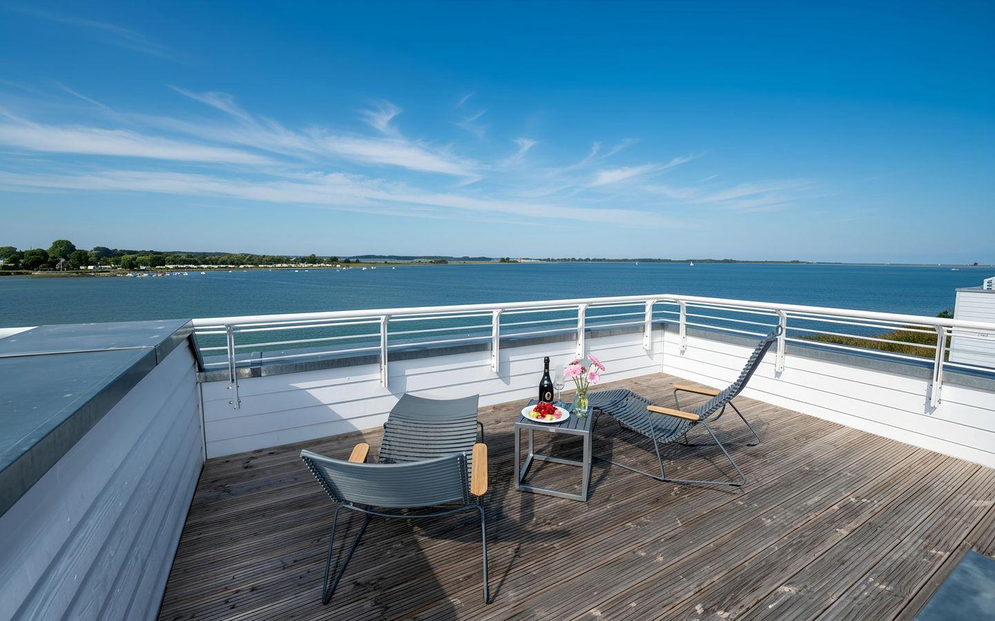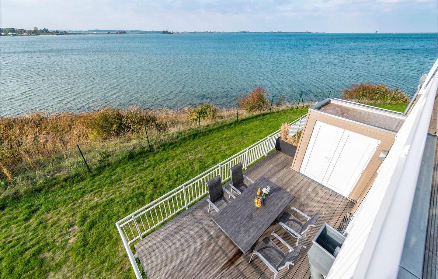 Frühstück auf der Terrasse, Grillen am Wasser oder auf der Dachterrasse mit Blick bis Schleimünde entspannen – Schleikante bietet auf vier Ebenen unzählige Lieblingsplätze. Hier sitzt man zwischen Himmel und Meer, hört das leise Rauschen der Wellen, sieht die Segelboote vorbeiziehen. Wenn die Sonne langsam hinter der Schlei versinkt, taucht sie das Haus in warmes Gold und schenkt Augenblicke, die bleiben.