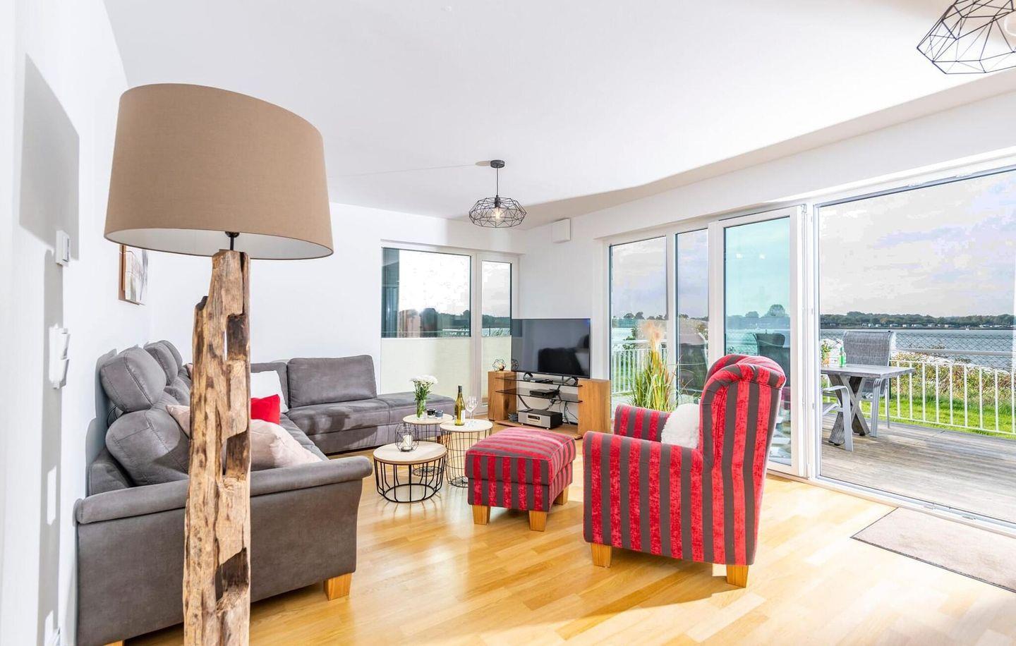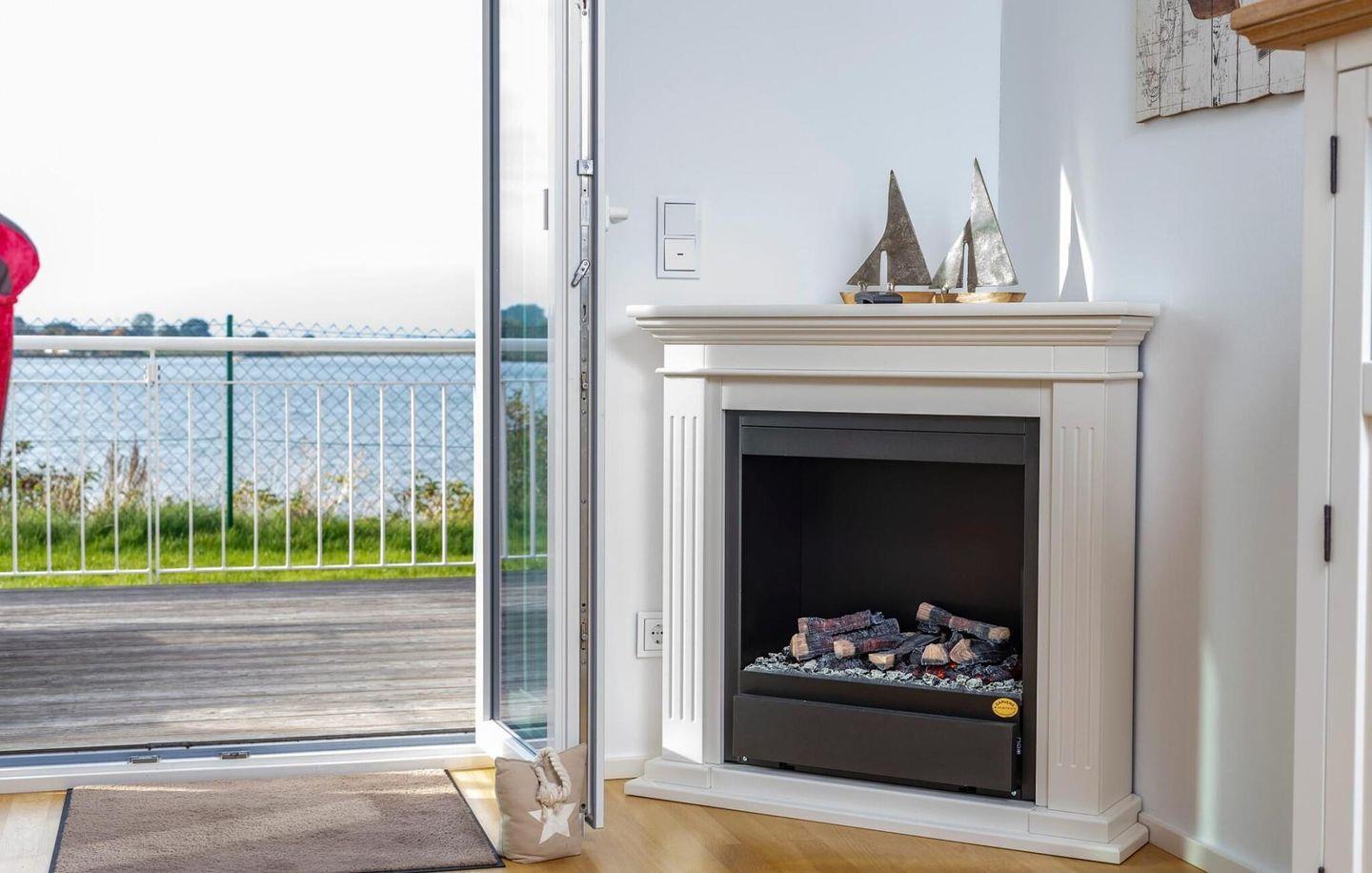 Das Herzstück des Hauses ist die lichtdurchflutete Wohnküche – modern, offen und liebevoll gestaltet. Bodentiefe Fenster holen den Fjord fast ins Wohnzimmer, während der Elektrokamin und die Fußbodenheizung eine behagliche Atmosphäre schaffen. In der voll ausgestatteten Küche wird Kochen zum Genussmoment mit Blick aufs Wasser und Duft nach Seeluft.