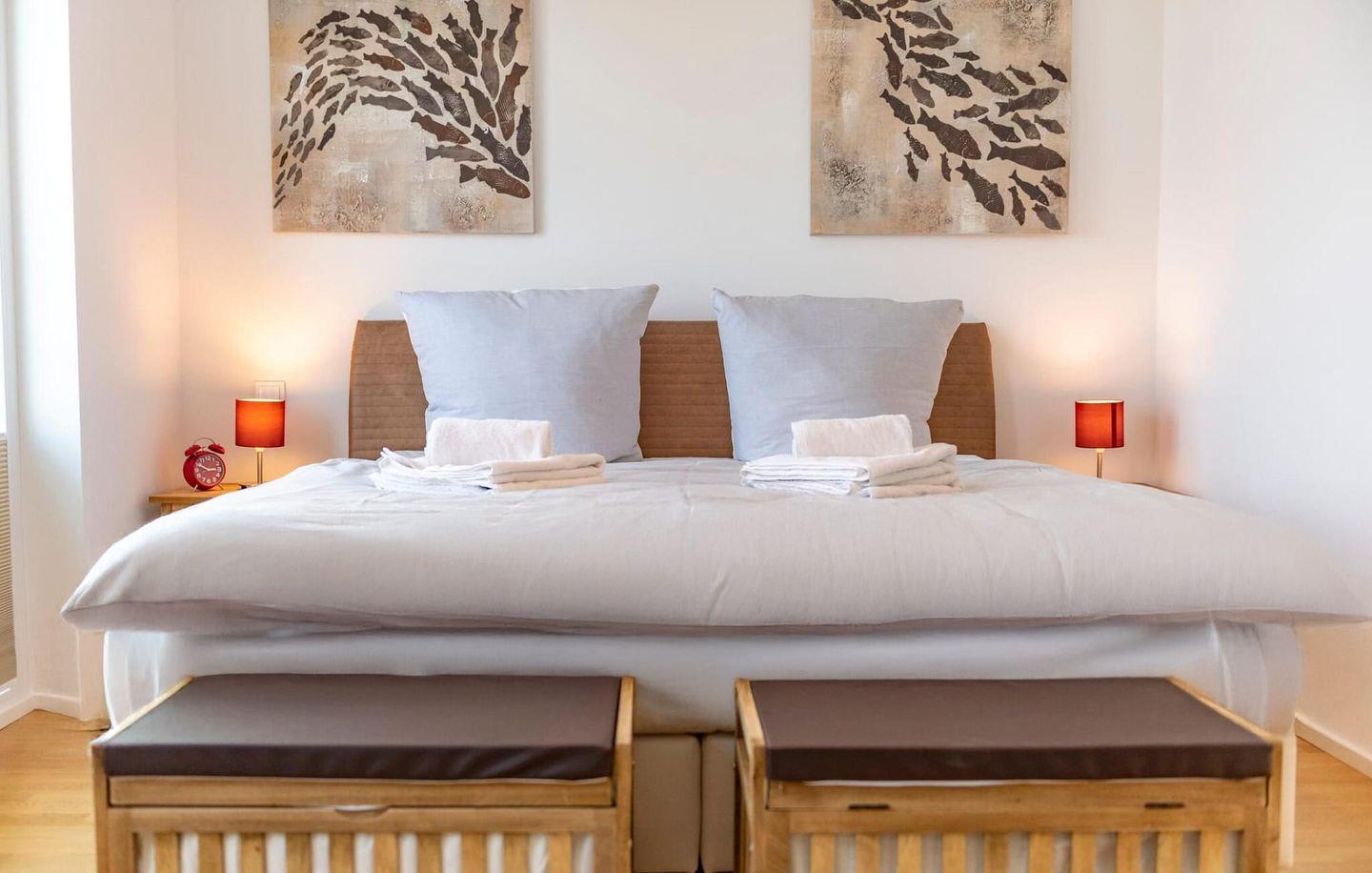 Drei Schlafzimmer verteilen sich über die oberen Etage. Jedes mit seinem eigenen Charakter, jedes mit Blick aufs Wasser. Die Boxspringbetten versprechen tiefen Schlaf. Morgens öffnet man die Tür zur Terrasse, spürt die klare Luft und sieht, wie Wildgänse über die Schlei ziehen. Ein Gefühl von Ankommen.