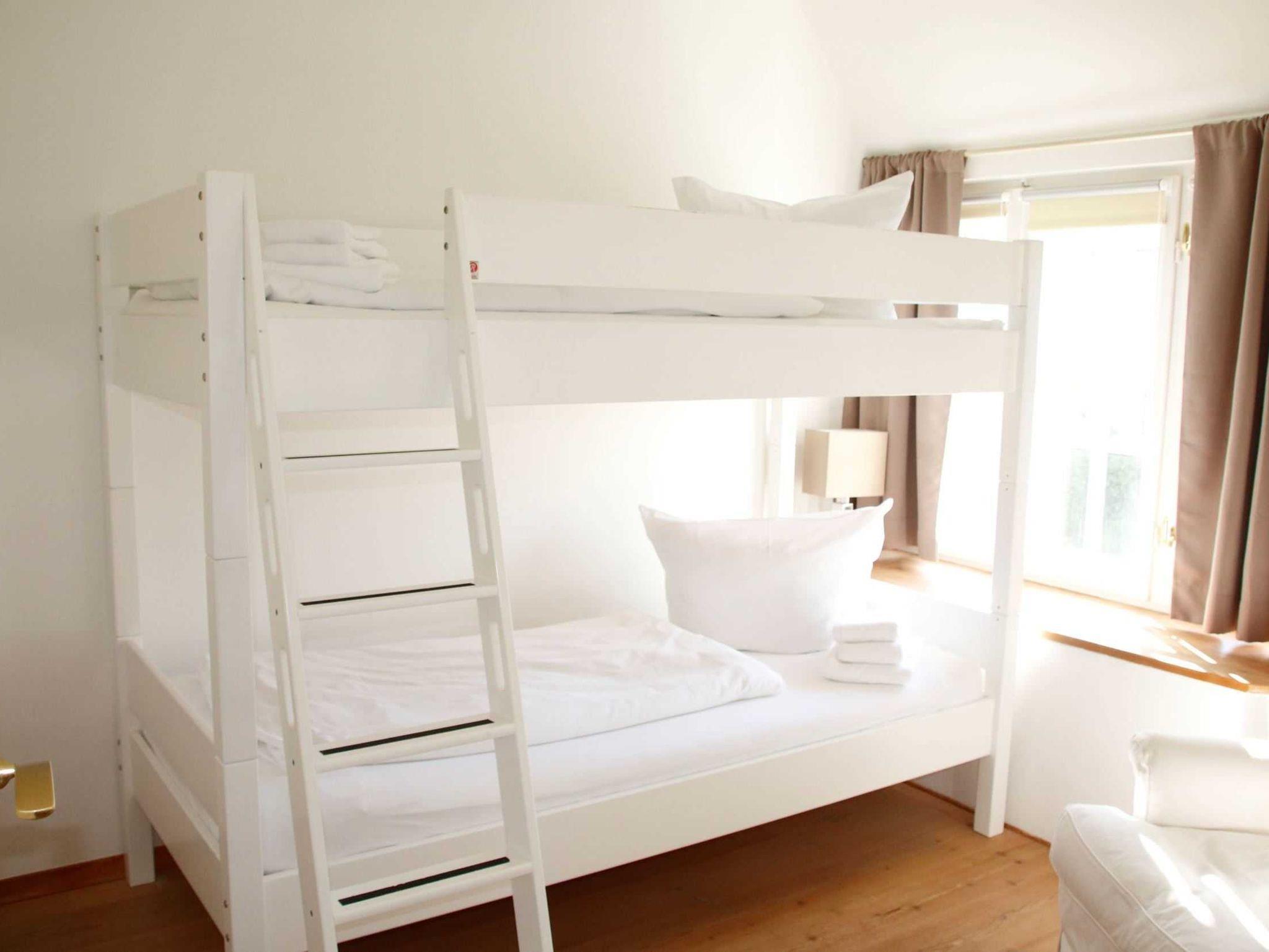 (Um in das Schlafzimmer mit dem Etagenbett zu gelangen, muss durch das Schlafzimmer mit dem Doppelbett durchgegangen werden. )