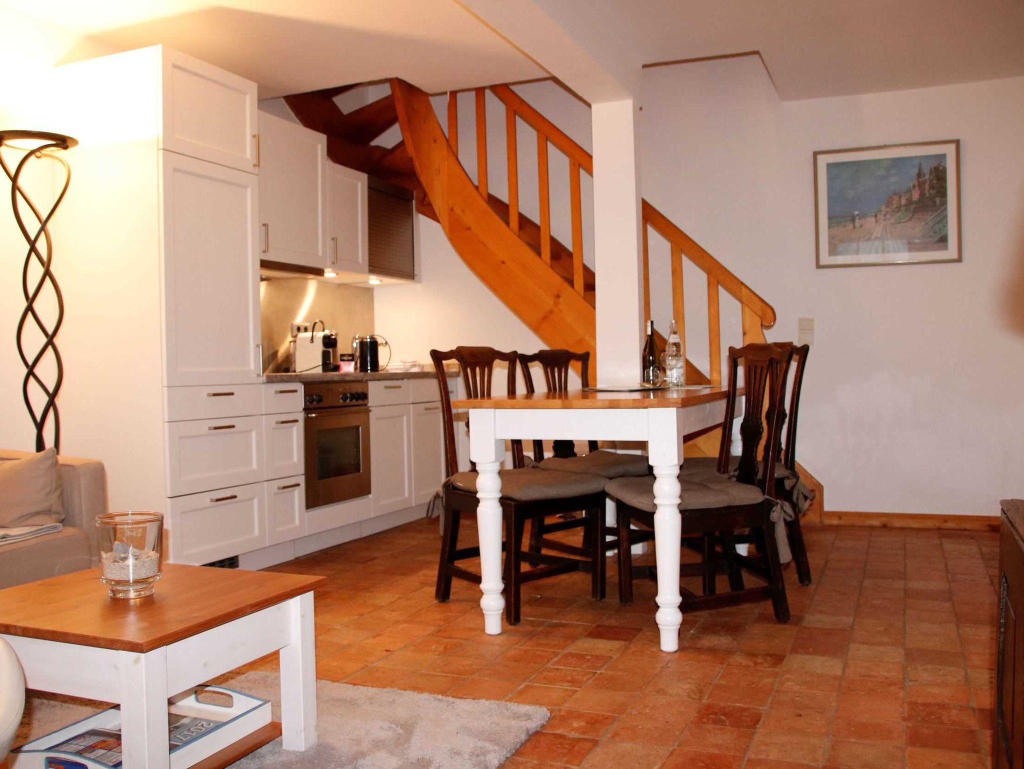 Diese wunderschöne Ferienwohnung verteilt sich über das Erdgeschoss und das 1. Obergeschoss. Im Erdgeschoss befindet sich das helle Wohnzimmer mit einer modernen intrigierten Küchenzeile.