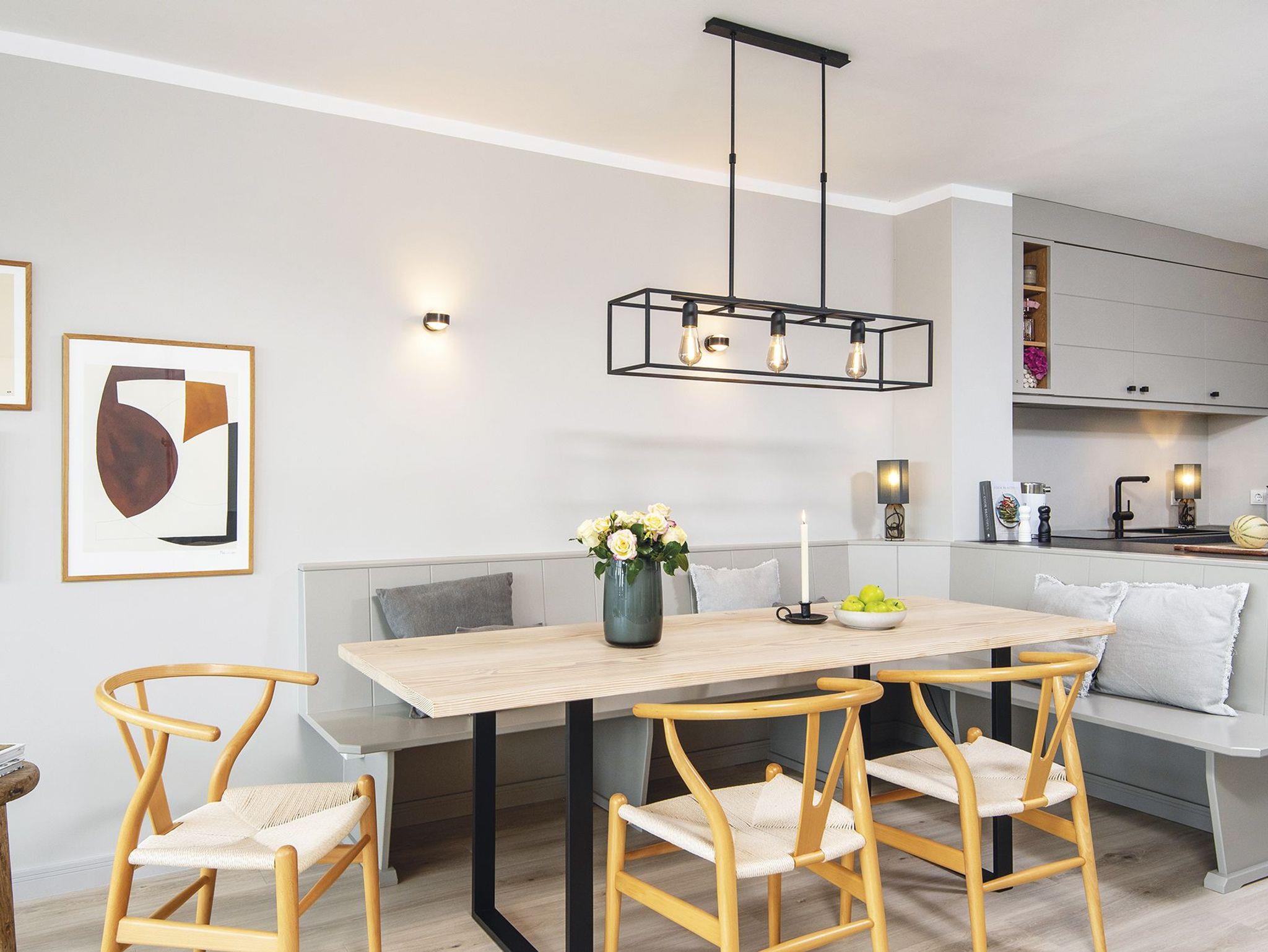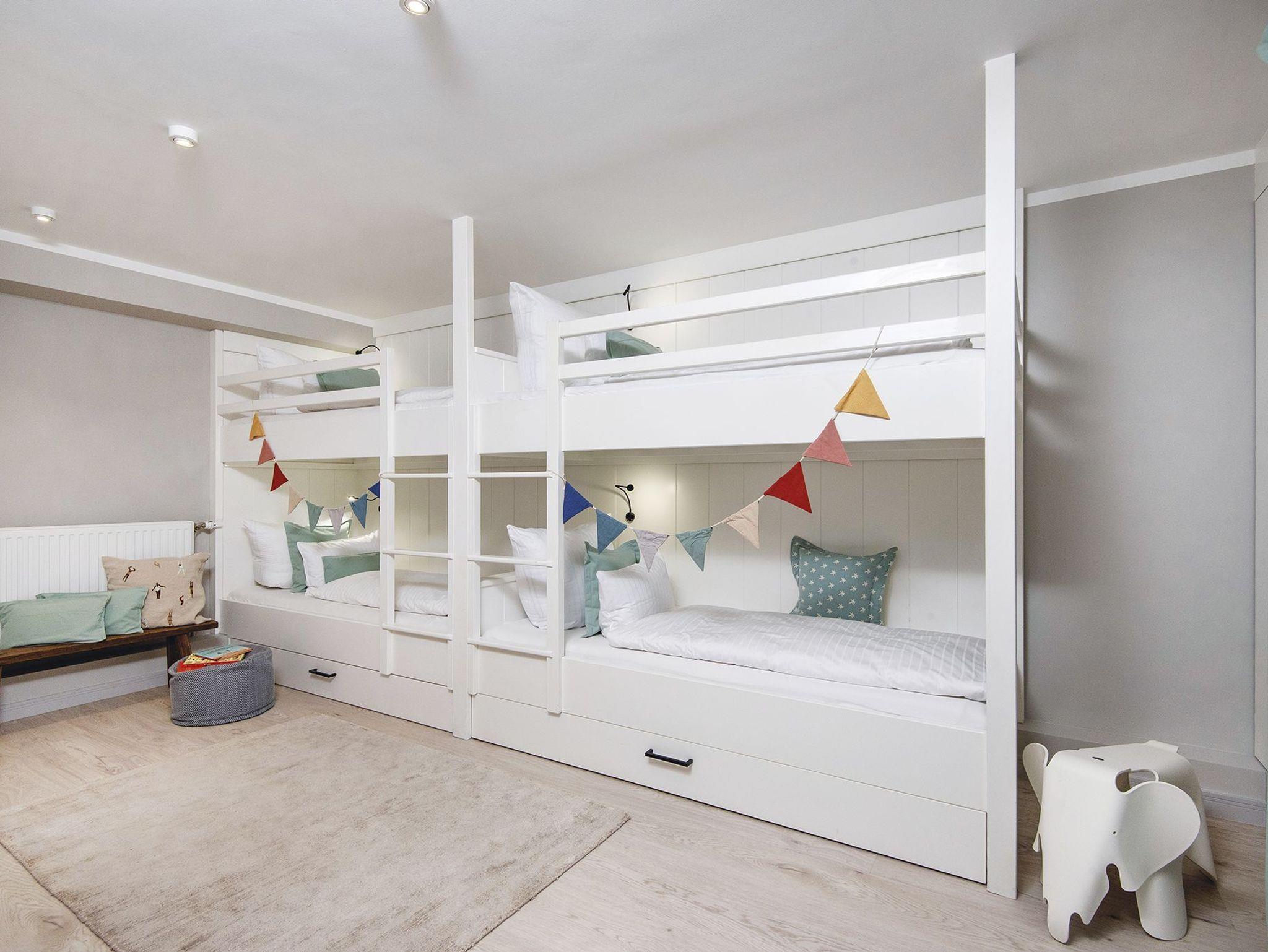 Wohnen im Dünental Klenterdeel in Keitum - Familienurlaub direkt am Watt. Das charmante Friesenhaus in dem diese Wohnung liegt, befindet sich am Ende einer ruhigen Sackgasse fernab der Straße. Das Quartier empfängt Sie im Erdgeschoss direkt im hell und modern gestalteten WohnEssbereich mit offener Küche und direktem Zugang zur privaten Terrasse mit tollem Blick auf das Weltnaturerbe Wattenmeer. Im Untergeschoss wird es gemütlich. Neben einem cozy Gästezimmer mit kleinem Doppelbett und separatem Gäste-WC, erwartet Sie noch ein weiteres Schlafzimmer mit Doppelbett und einem modernen Bad en suite. Hier dient die großzügige Dusche auch als Dampfsauna, perfekt für die typischen Nordseetage. Am Ende des Flurs mit den vielen Schränken befindet sich ein weiteres modernes Duschbad mit Doppelwaschbecken. Daneben dann das Kinderparadies mit Teppichboden, begehbarem Kleiderschrank und zwei Doppelstockbetten, wo vier kleine Urlaubsgäste herrlich träumen dürfen.