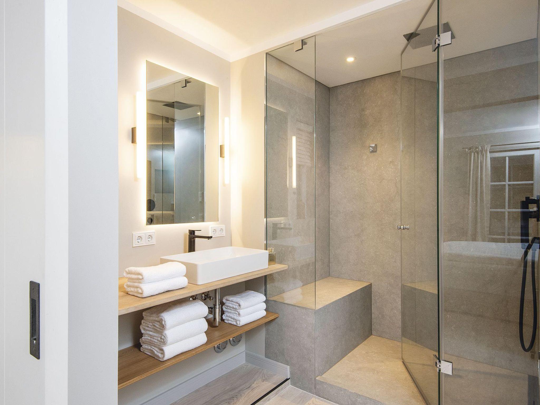 Das ganze Quartier ist in modernen Naturtönen gehalten mit Holzfußboden und sehr schönen Tischlereinbauten ausgestattet.