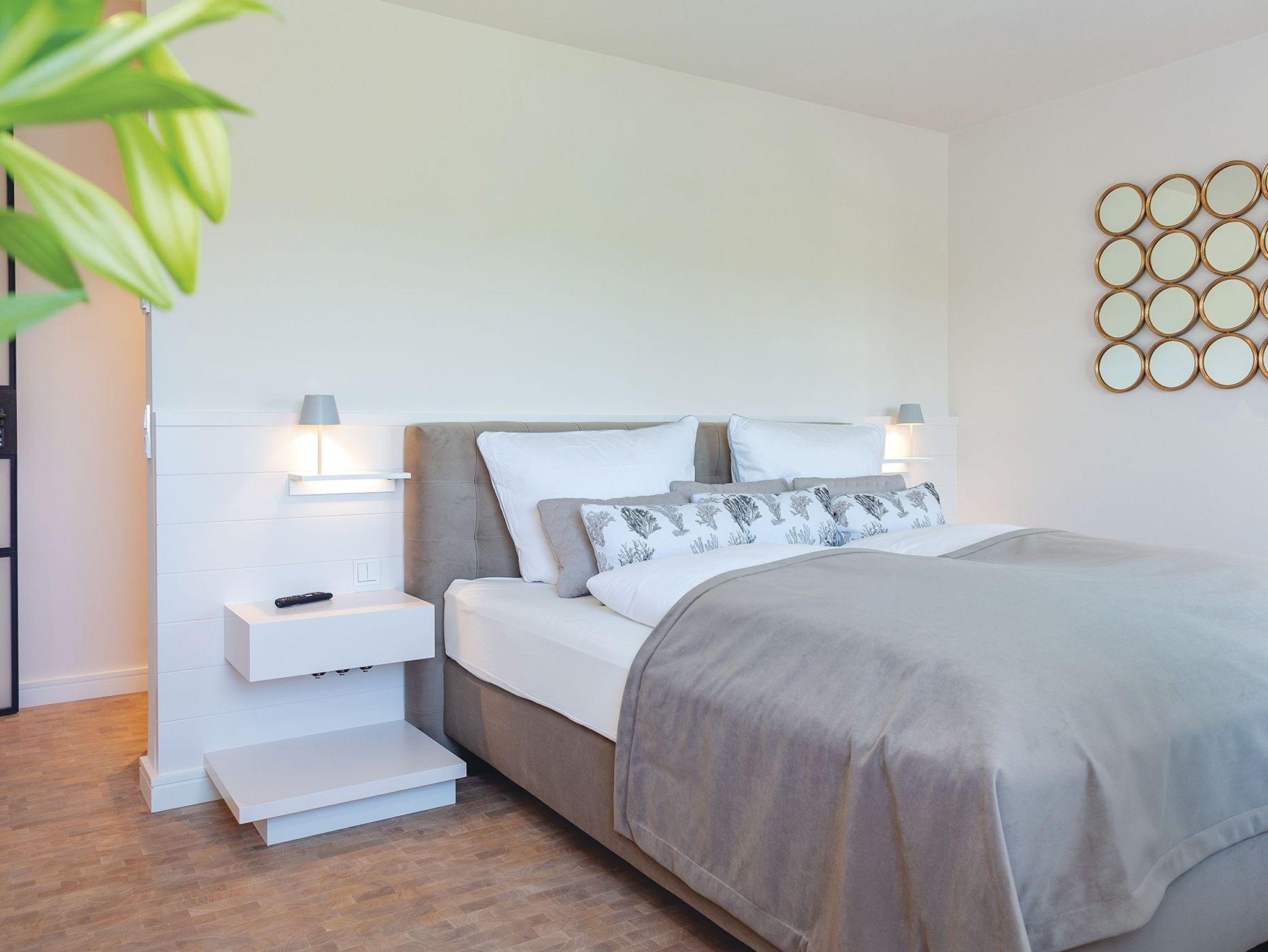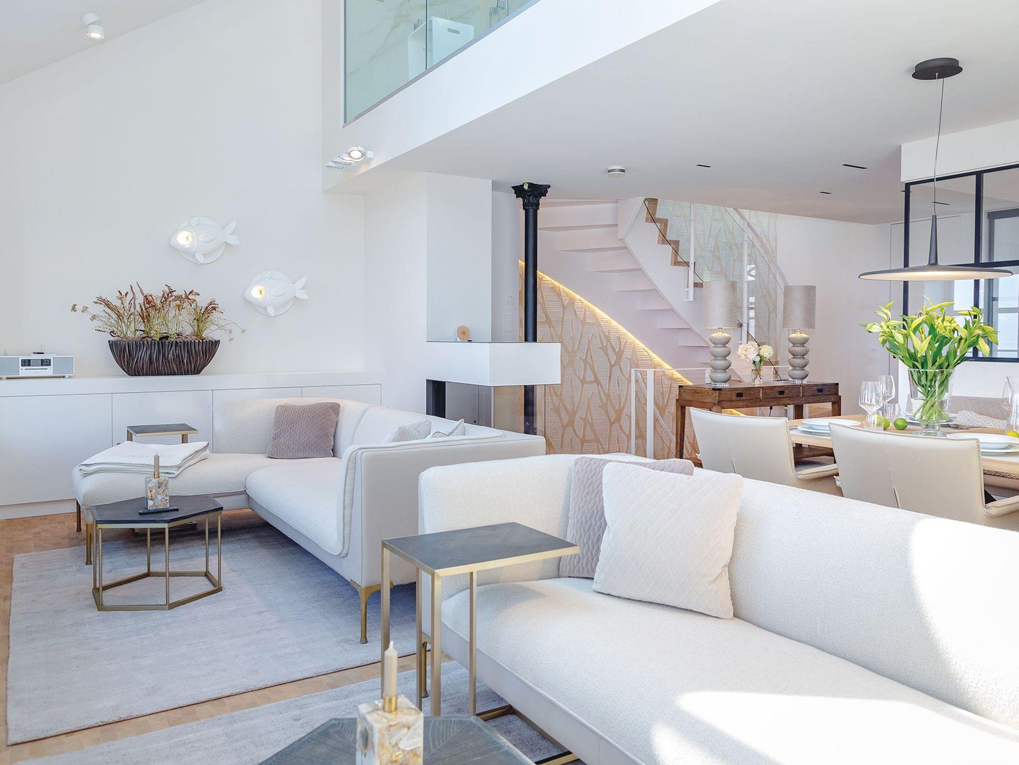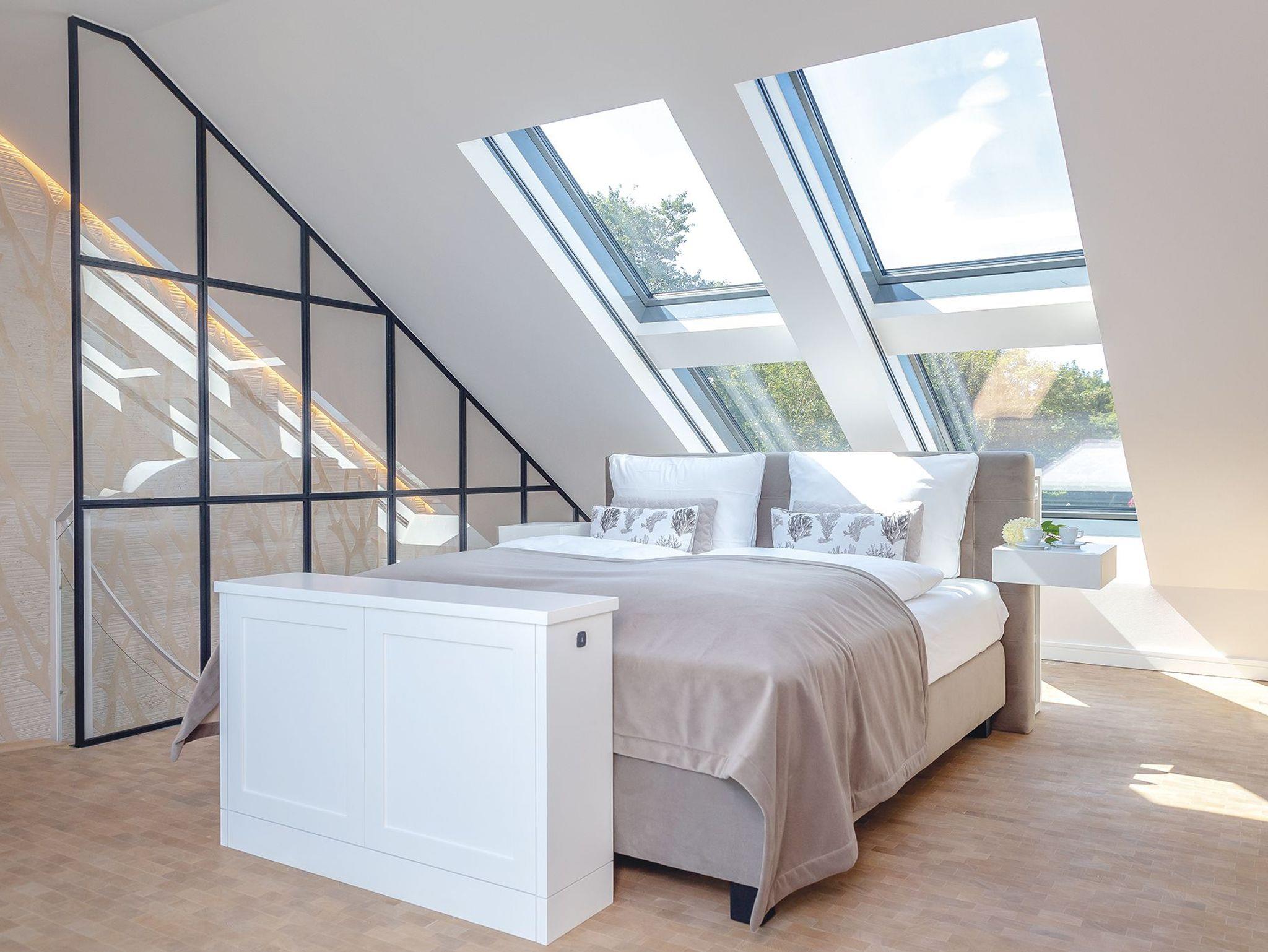 Früher geschäftiges Packhaus am Keitumer Hafen - heute exklusiver Logenplatz mit unvergleichlichem Wattblick. Dieses exklusive Ferienquartier gehört nicht ohne Grund zu den Keitumer Geschichtspunkten - das Mittelhausteil für bis zu sechs Gäste lässt keine Wünsche offen. Allein der Zugang zu diesem Hausteil, über die imposante historische Treppe auf der Westseite, verspricht schon absoluten Luxus. Sie betreten das Quartier über einen kleinen Flur, direkt über das offen gestaltete 1. OG mit voll ausgestatteter Küche, einladend großem Esstisch, Elektro-Gaskamin, Gäste-WC und Sofas vor den Fenstern mit atemberaubendem Wattblick. Direkt darüber im 2. OG lassen die offene Galerie mit Doppelbett mit freiem Blick in den Sternenhimmel durch die riesigen Dachfenster, die gläserne Dusche mit Ausblick und eine Sauna für Zwei keine Wünsche unerfüllt. Auf Erdgeschossniveau finden Sie ein weiteres urgemütliches Doppelschlafzimmer mit geräumigem Duschbad samt Doppelwaschtisch, sowie den Zugang zur privaten Terrasse mit unvergleichlich schönem Wattblick gen Sonnenaufgang. Das dritte Schlafzimmer samt Traumbad mit XXL-Dusche und freistehender Wanne ist im hellen Untergeschoss untergebracht. Das ganze Hausteil ist mit edelsten Materialien ausgestattet, die Böden sind mit Naturstein und Echtholz ausgelegt.