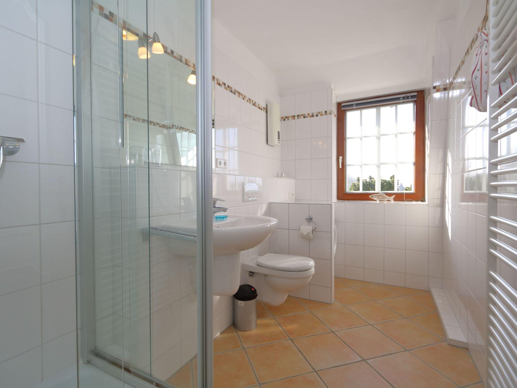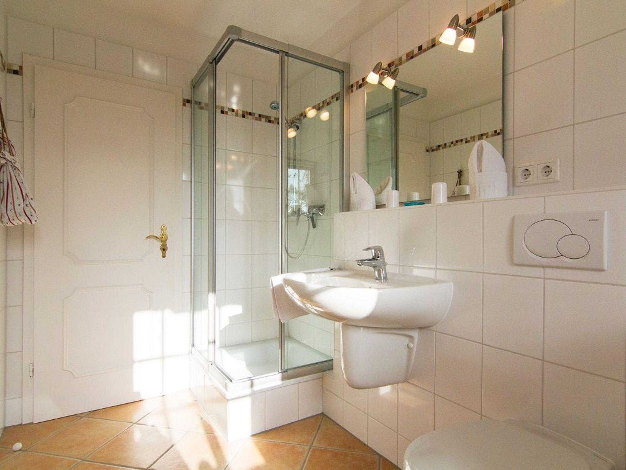 Das Appartement ist komplett renoviert und mit hochwertigen Tischleieinbauten ausgestattet. Im großzügigen Wohnzimmer stehen die Couchgarnitur und der Essplatz, WLAN ist vorhanden. Außerdem ist hier die Küchenzeile. Vom Essplatz hat man einen weiten Blick über Wiesen. Auch das Watt kann man vom Wohnzimer aus sehen. Zwei Schlafzimmer mit Doppelbetten sind vorhanden. In dem Duschbad mit Fenster steht auch die Waschmaschine. Zum Appartement gehört ein eigener Gartenanteil mit den entsprechenden Gartenmöbeln und Strandkorb.