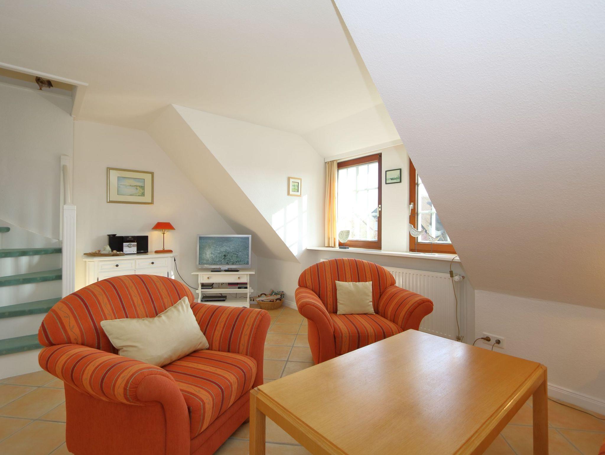 Das Appartement befindet sich in sehr ruhiger Lage in einem Reetdachhaus im Obergeschoss. Das Haus steht in unmittelbarer Nähe zum Watt. Vielfältige Einkaufsmöglichkeiten und Gastronomie befinden sich im Ort.