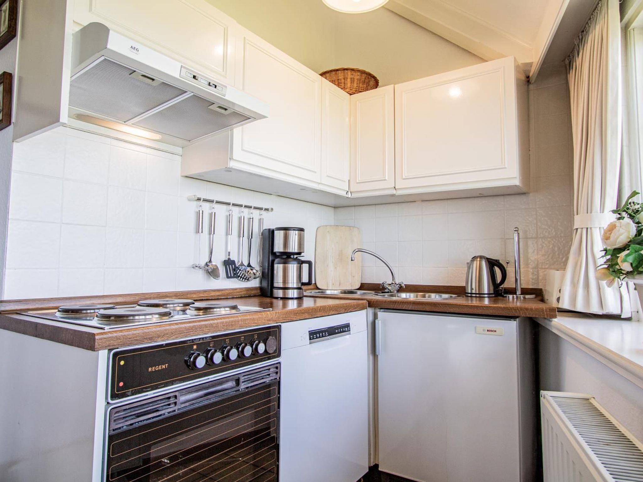 Kühlschrank, Geschirrspüler, Gefrierfach, Wasserkocher, Kaffeemaschine, Toaster, Kochfeld, Geschirr
