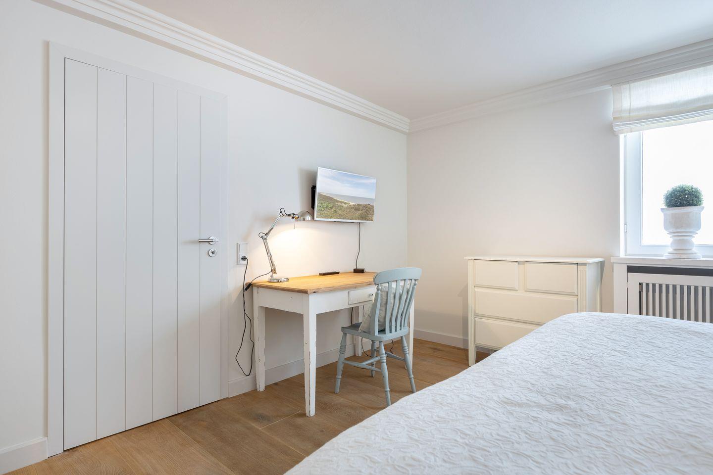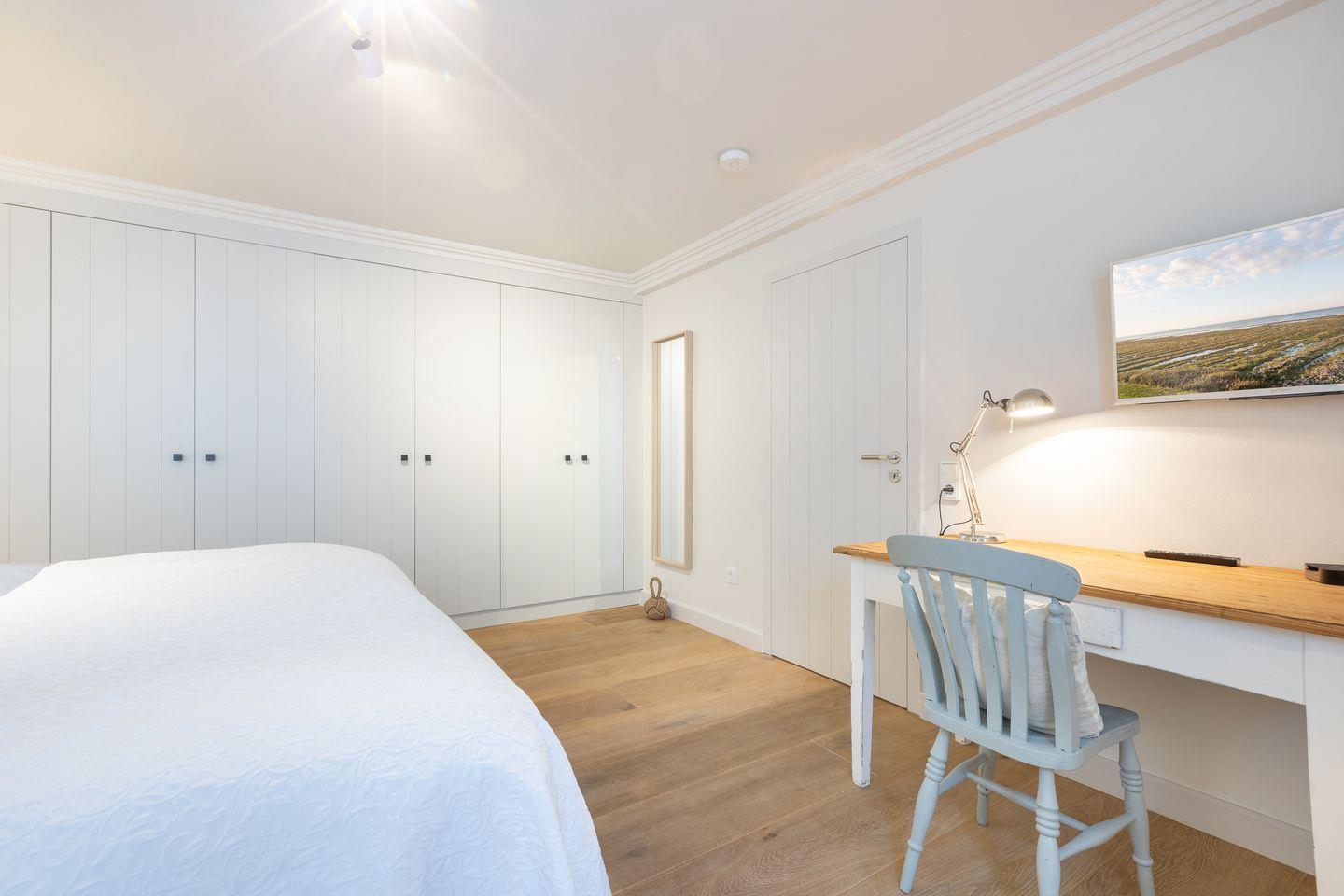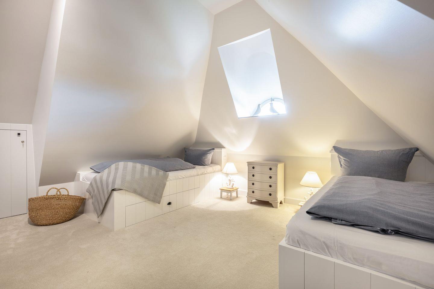Nach einem langen Spaziergang an der frischen Nordseeluft oder an kühleren Tagen lädt Ihre private Sauna mit Ruheraum zum Entspannen ein. Die komfortabel ausgestatteten Schlafzimmer bieten Platz für bis zu sieben Gäste – mit zwei Doppelbetten und drei Einzelbetten ist das Haus auch perfekt für Familien geeignet. Die stilvollen Badezimmer mit hochwertigen Armaturen sind wahre Wohlfühloasen, die Ihnen zusätzlichen Komfort bieten.