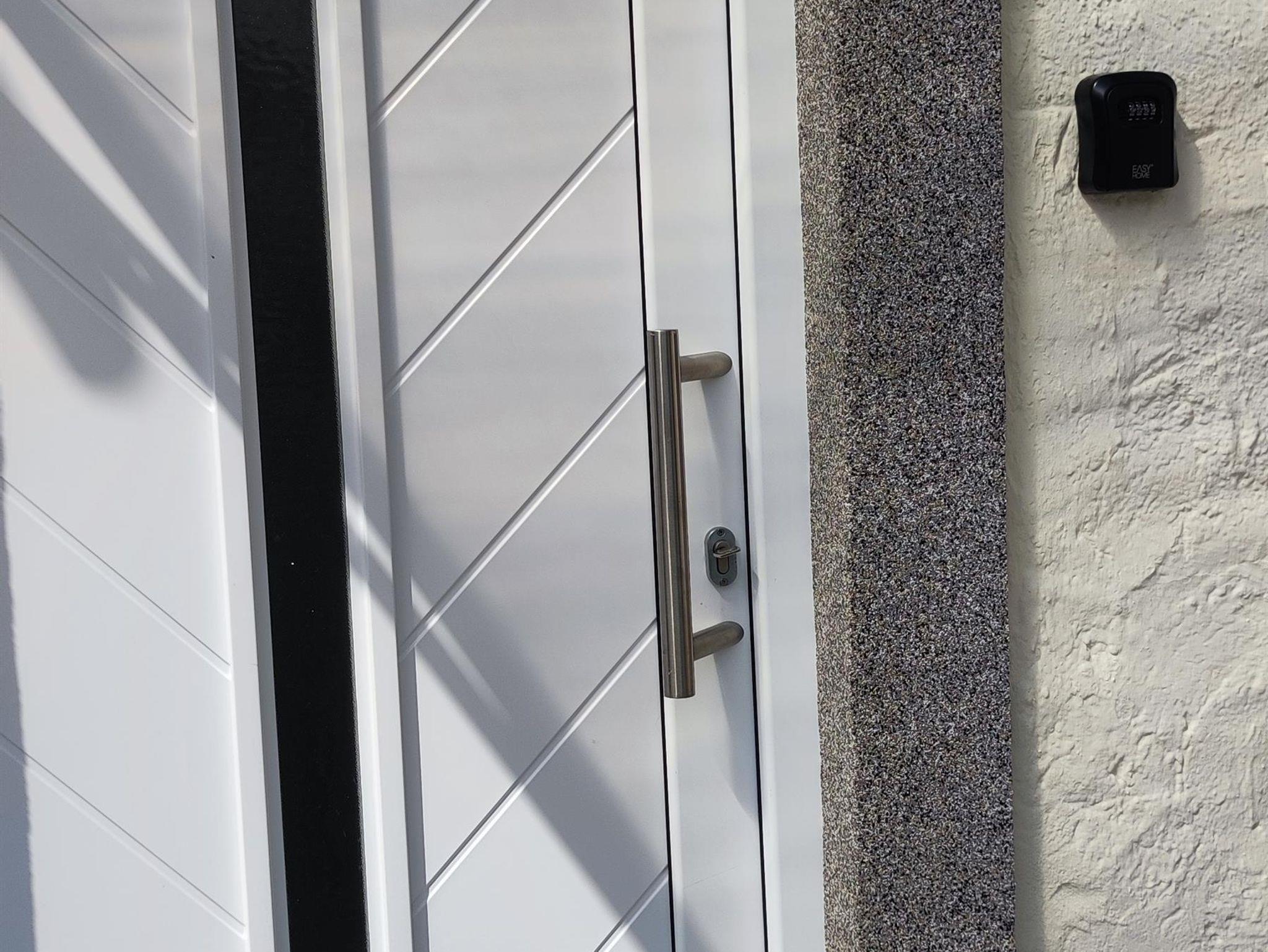 Das Bad mit Dusche und WC ist neu und modern im eleganten Stil gehalten und verfügt über Fön, Seifenspender, Waschmaschine etc.