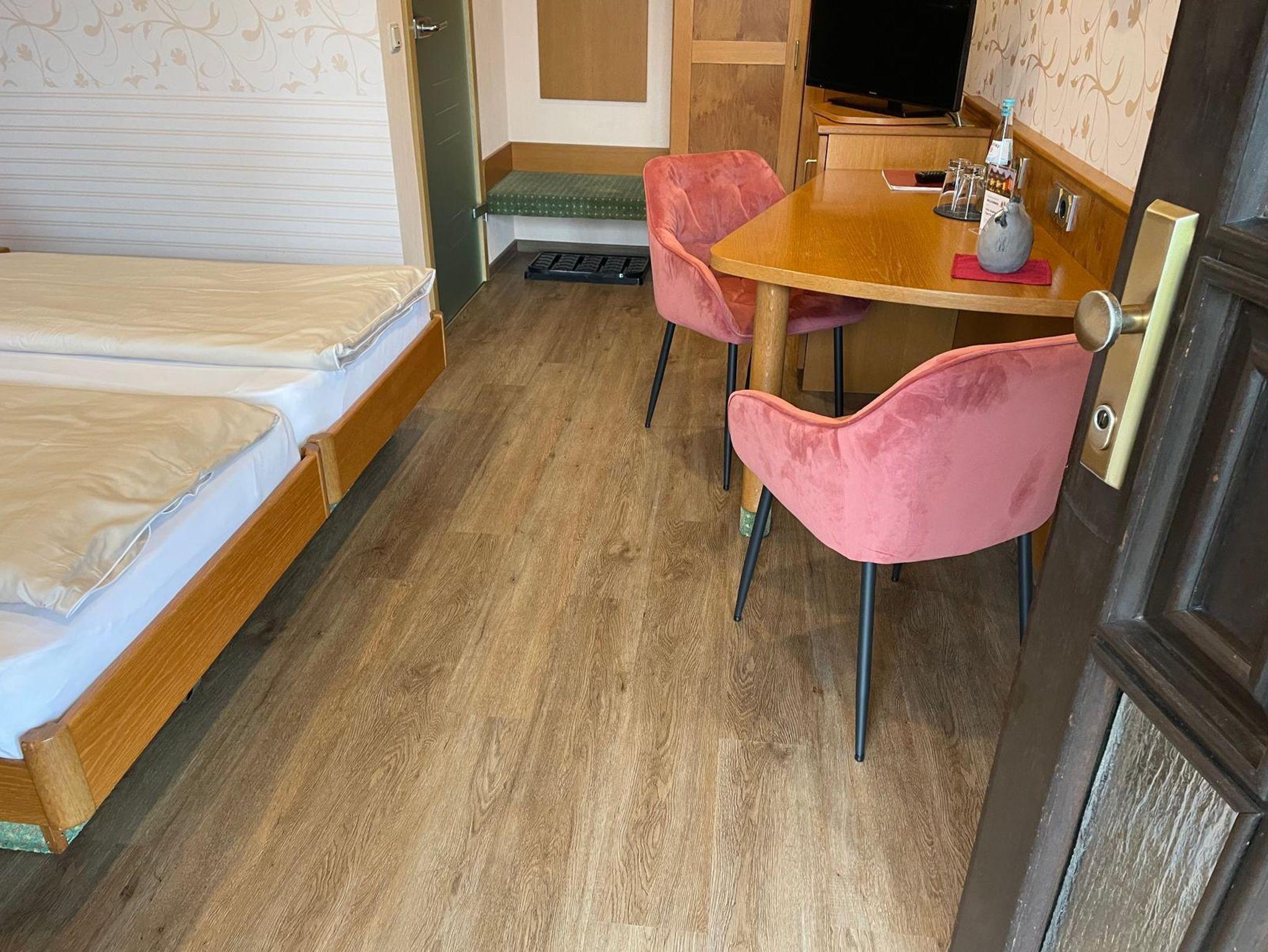Ein Zimmer - sowohl als Einzel, als auch als Doppelzimmer buchbar - ist als barrierefrei nach DIN zertifiziert worden.