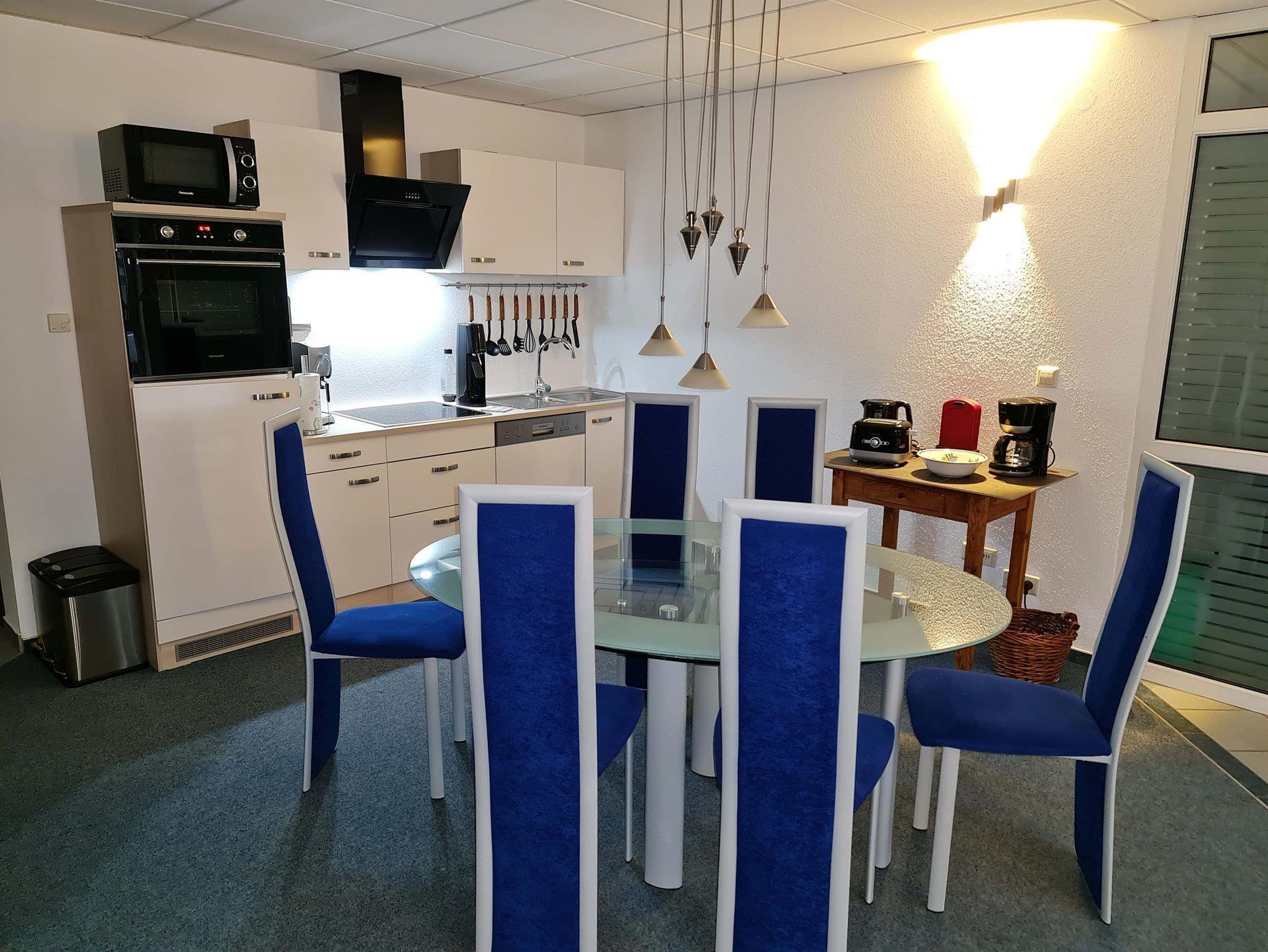 Durch einen separaten Eingang gelangen Sie in die Ferienwohnung. Sie verfügt über eine moderne Küche mit Essbereich ( Spülmaschine,