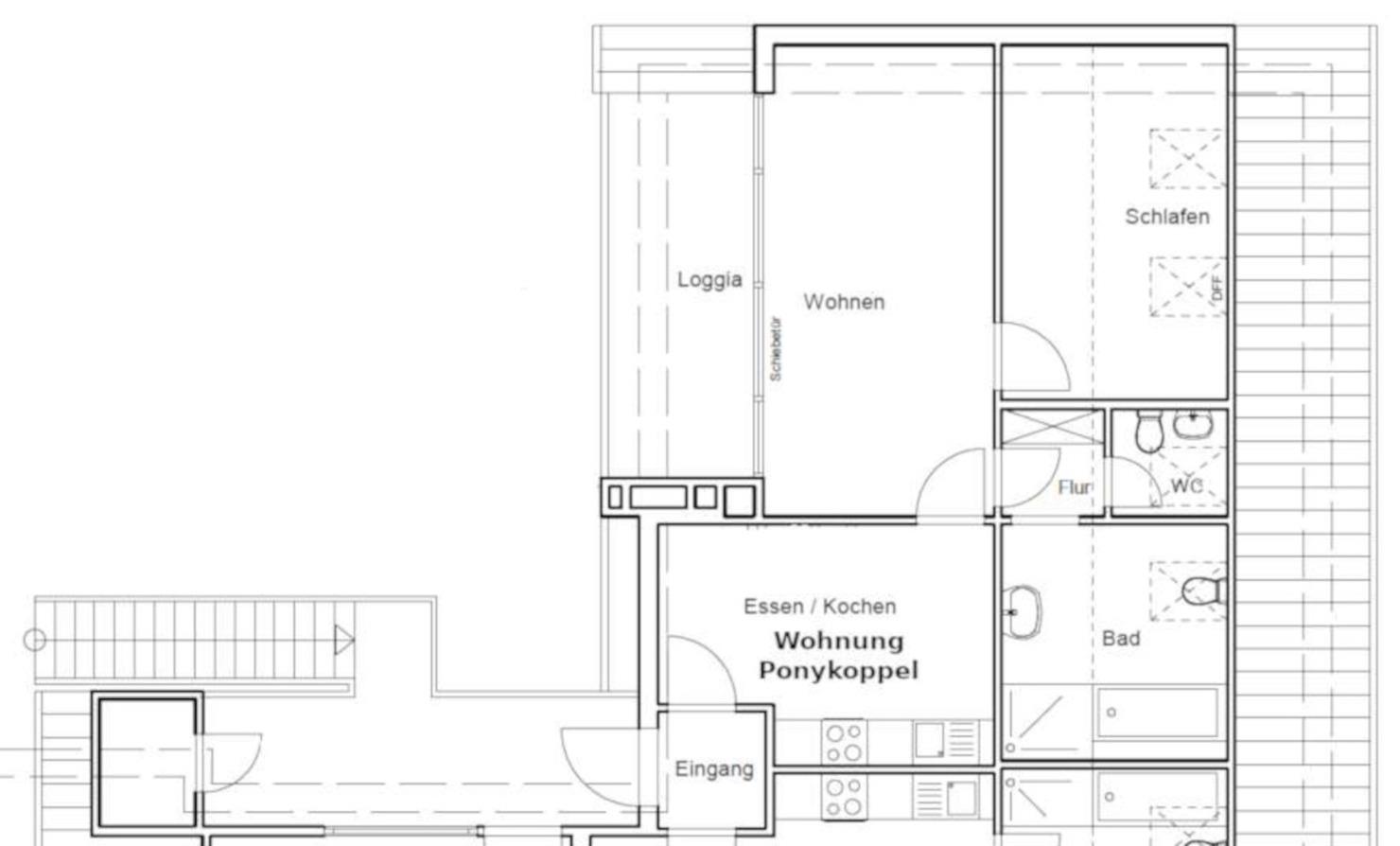 Die Wohnung befindet sich zwischen 2 Ferienhöfen und neben einer Arztpraxis.
