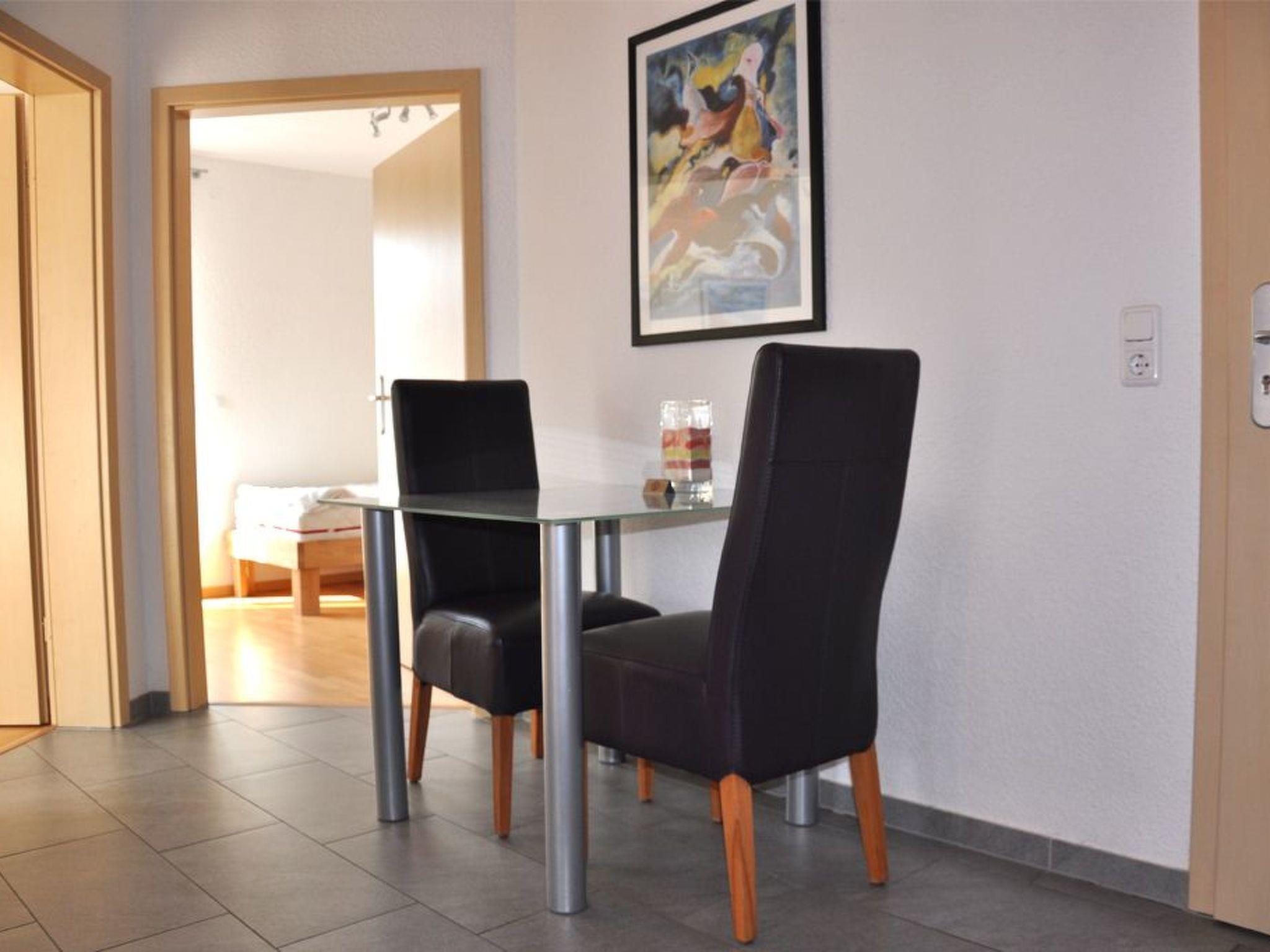 The holiday flat on the top floor is approx. 70m² in size and offers space for four adults and a small child. In the cosy living and dining area you will find the open fitted kitchen with convection oven and microwave, induction hob, dishwasher, coffee machine, toaster, egg cooker and much more. In the first bedroom you will find a double bed (a cot can be added) and in the second bedroom you will find two separate beds. The bright bathroom has a large walk-in shower, hairdryer, washing machine and WC. A flat-screen TV, DVD player and a stereo system in the living room are also included. There is another satellite TV in one of the bedrooms. WLAN/Internet and the telephone (for calls to German landlines and mobile phones) can be used free of charge.