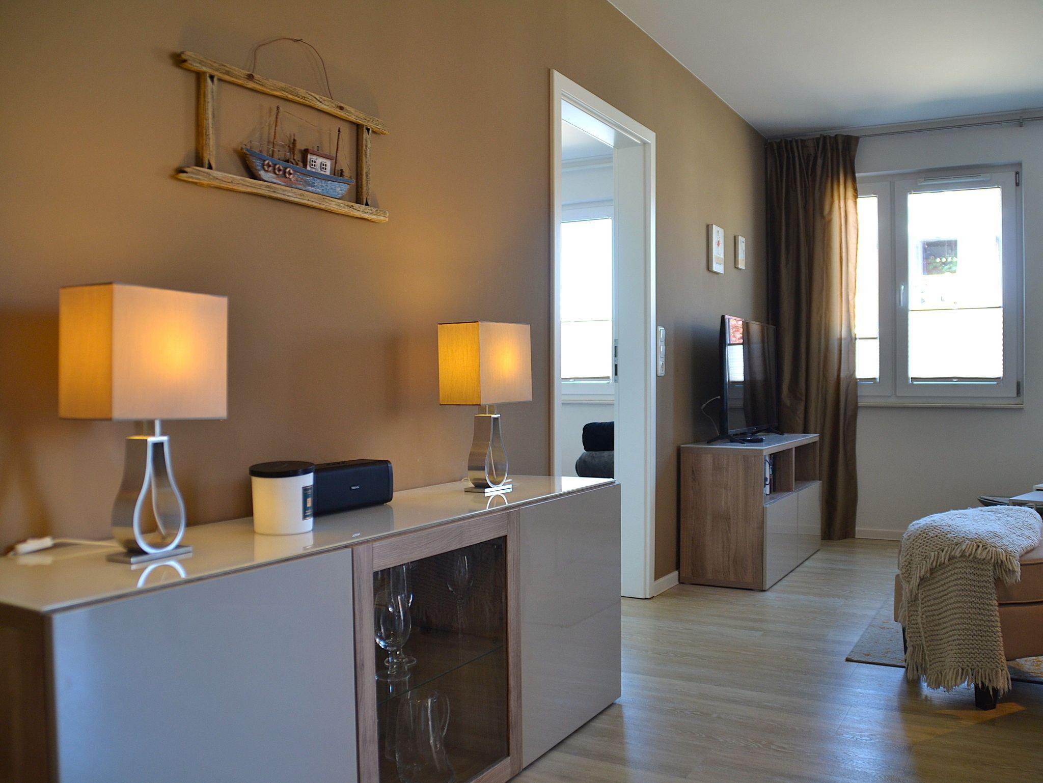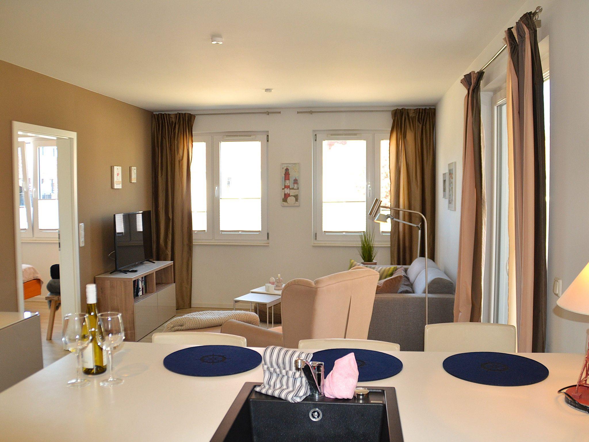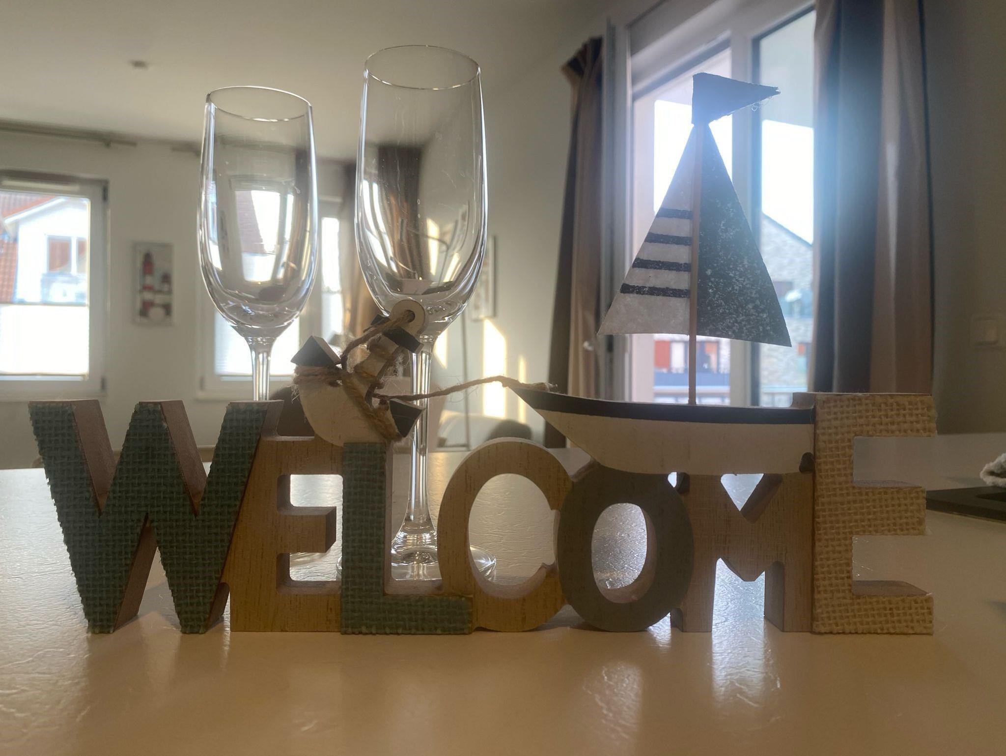 Das modern eingerichtete Appartement „Glück am Meer“ befindet sich in der 1. Etage des Hauses und ist