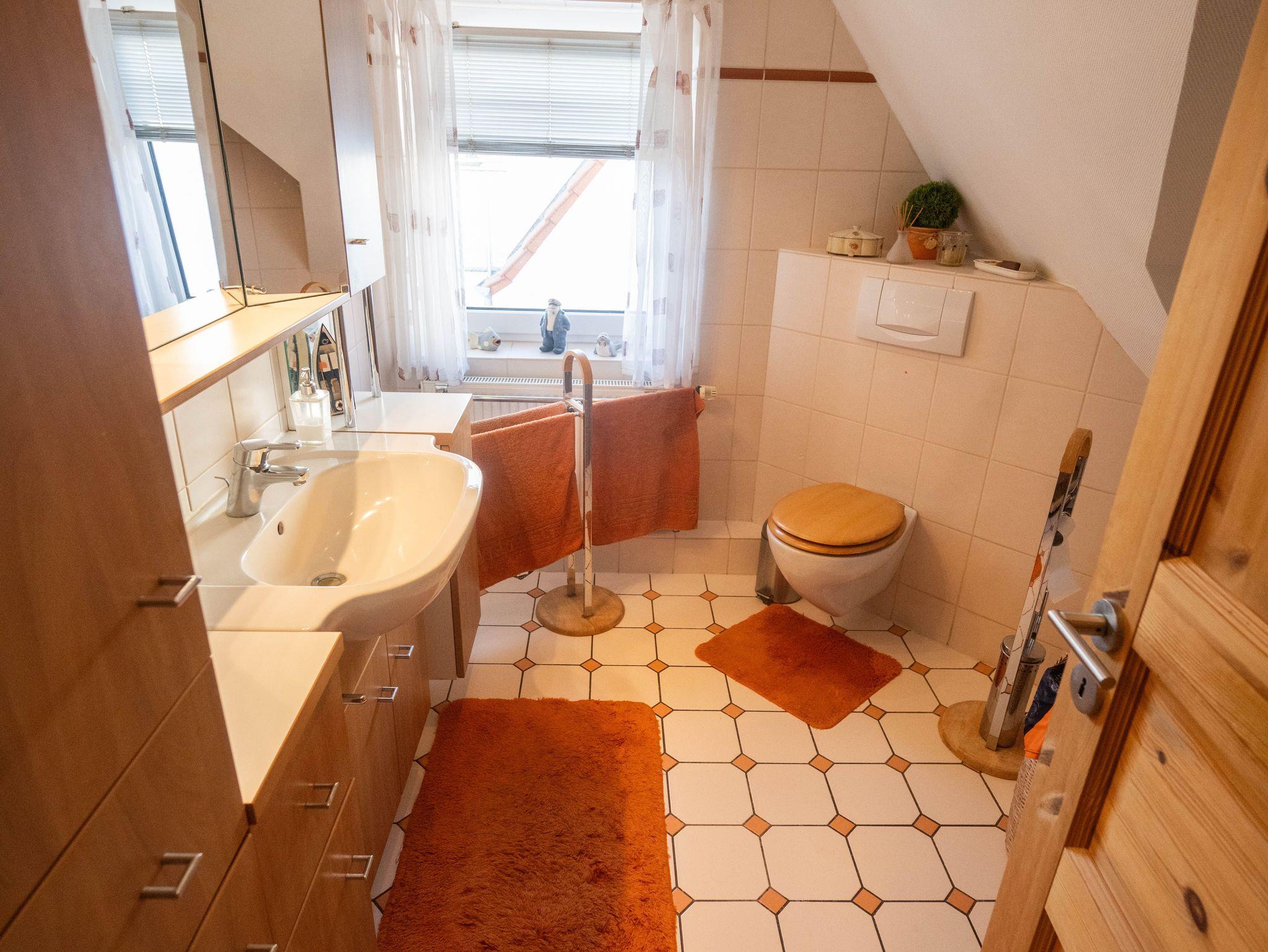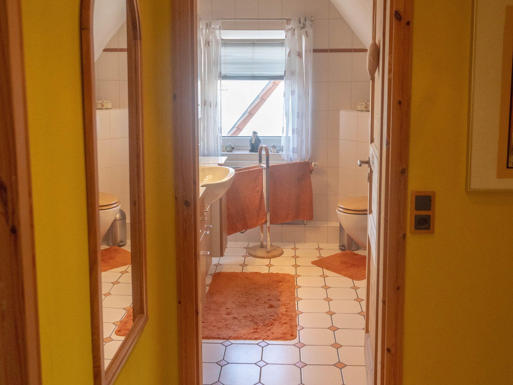 Die obere Etage ist aufgeteilt in 2 helle Schlafzimmer und ein Duschbad/WC.