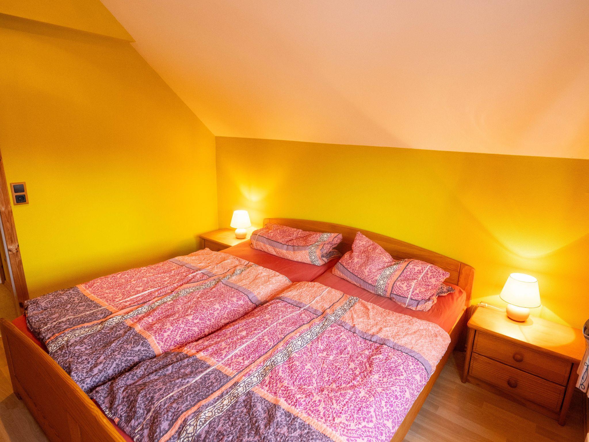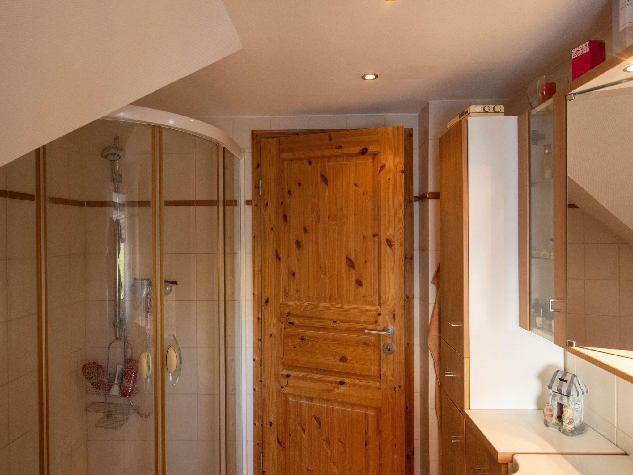 Die obere Etage ist aufgeteilt in 2 helle Schlafzimmer und ein Duschbad/WC. Das eine Schlafzimmer verfügt sogar über einen möblierten Balkon.