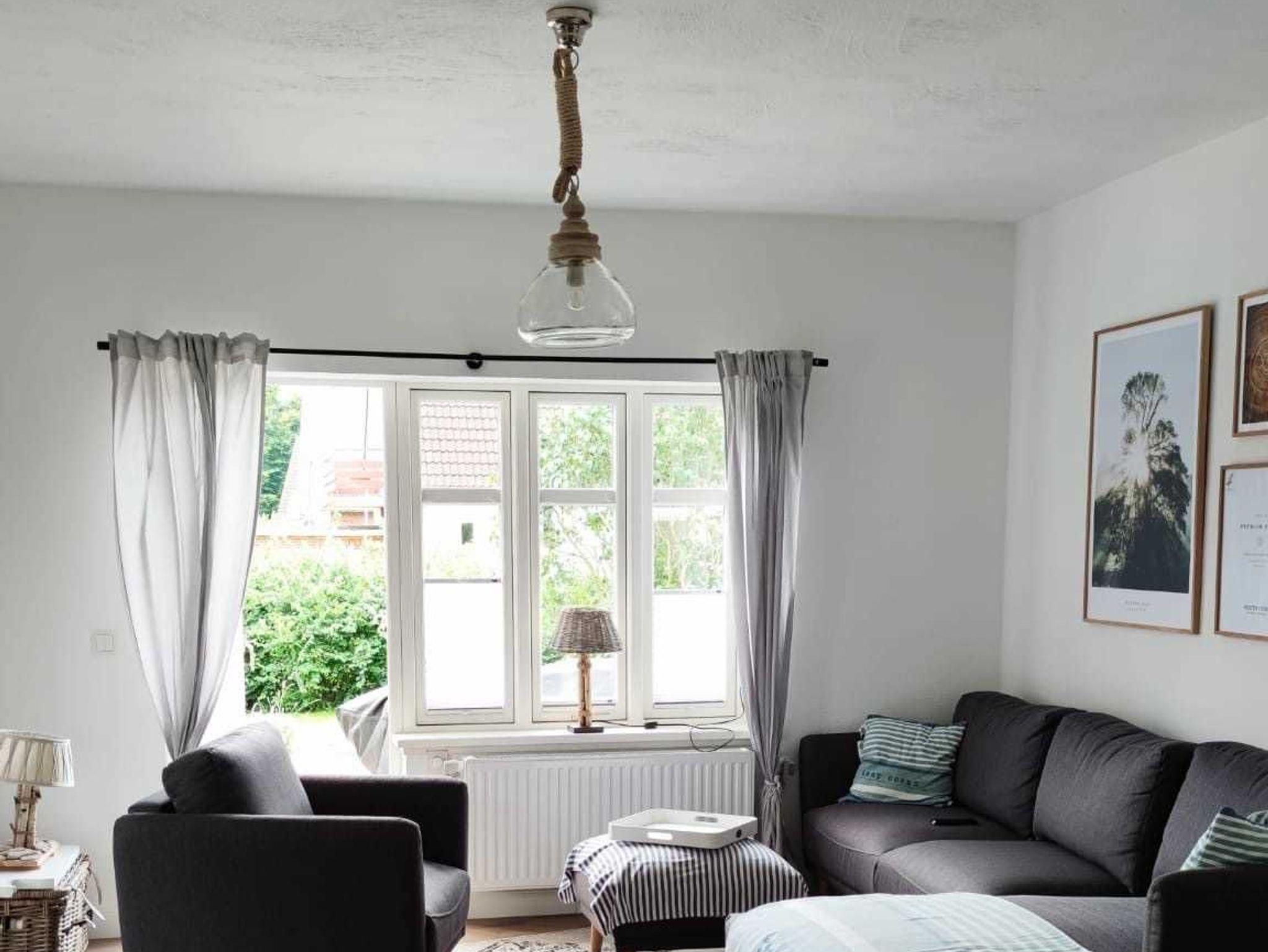 In allen 3 Schlafzimmern sorgen Verdunkelungsvorhänge für einen erholsamen Schlaf. In den beiden Schlafzimmern im Obergeschoss lassen sich zusätzlich die Schrägen-Fenster verdunkeln und es gibt in beiden einen Föhn.