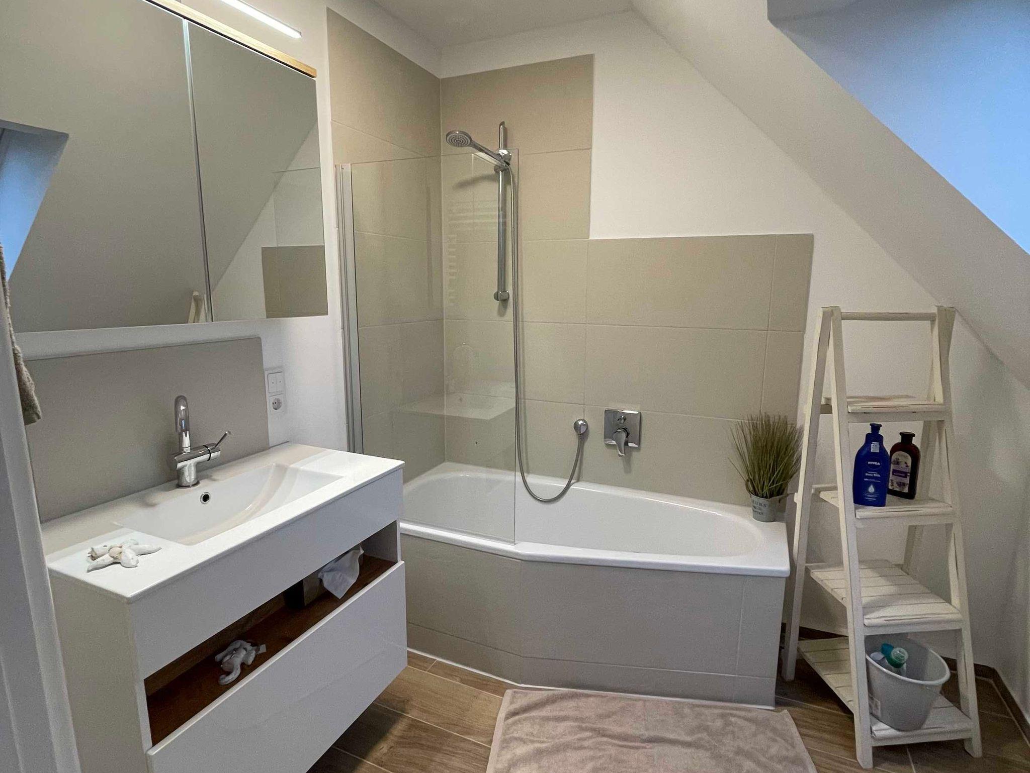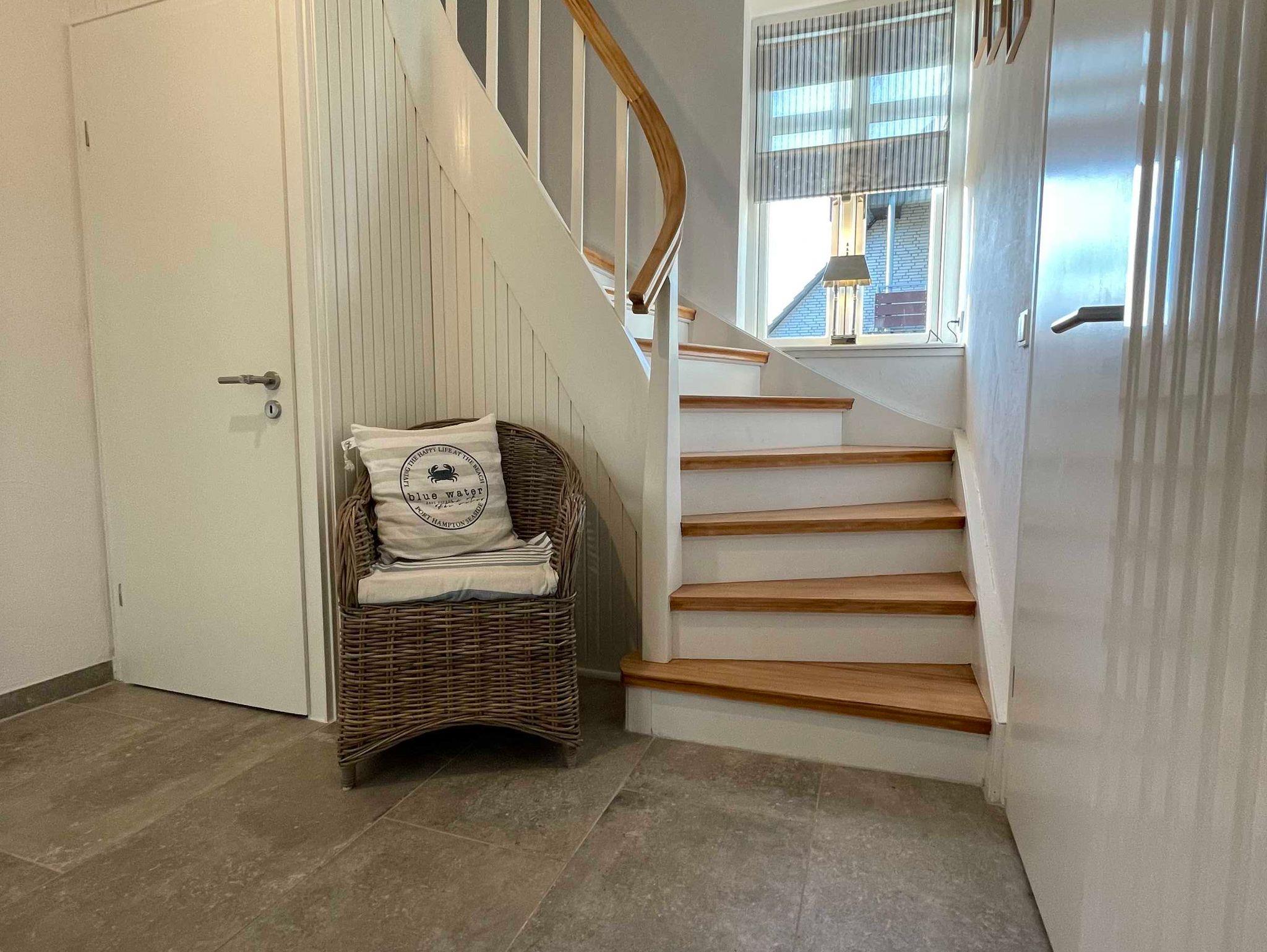 Das Tage am Meer verfügt über 3 Schlafzimmer und 3 Bäder. Von den beiden Schlafzimmern im Obergeschoss (mit jeweils Bad en Suite) aus direkter Zugang zur großen, möblierten Dachterrasse mit Blick zur Ostsee.