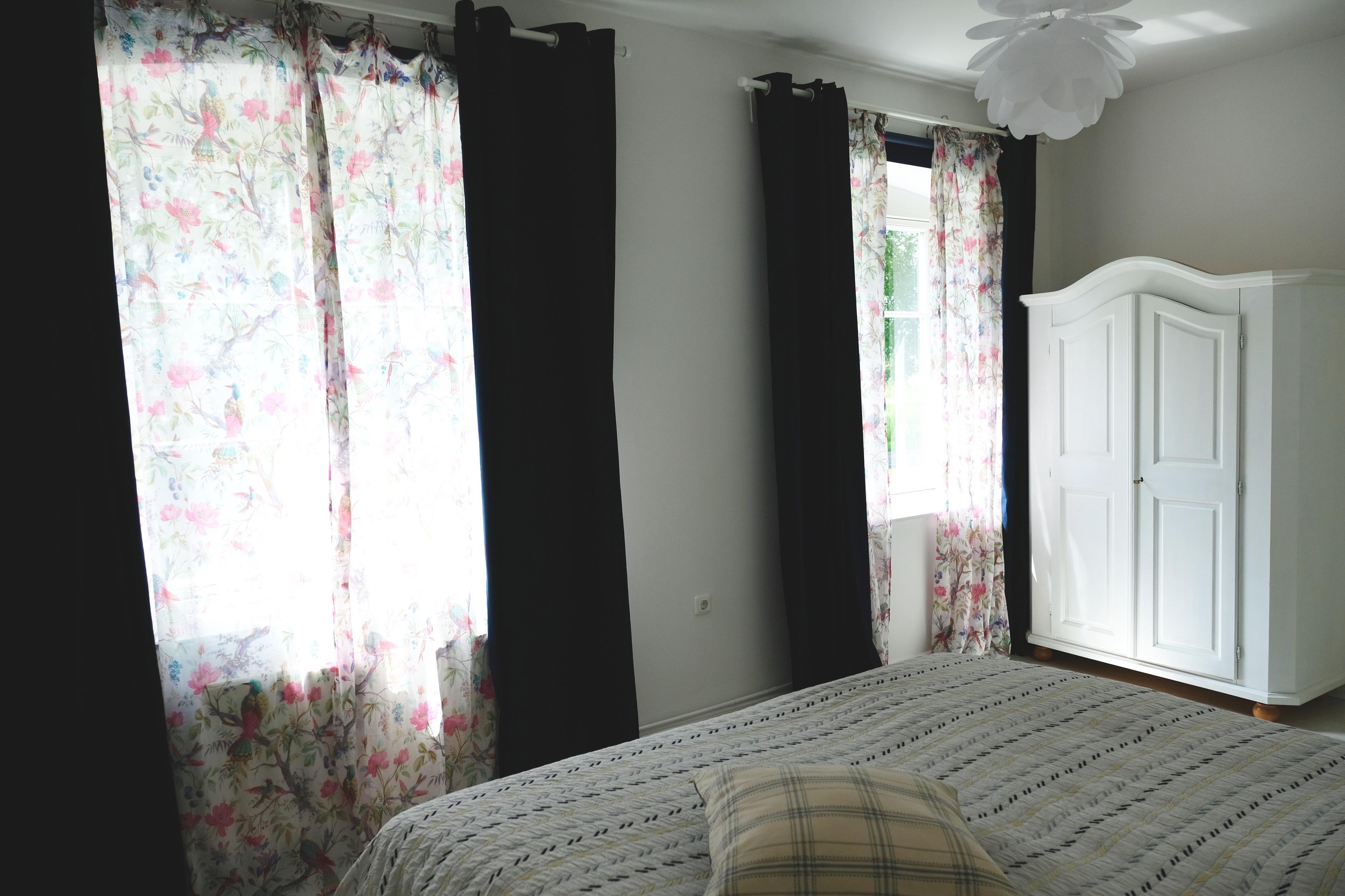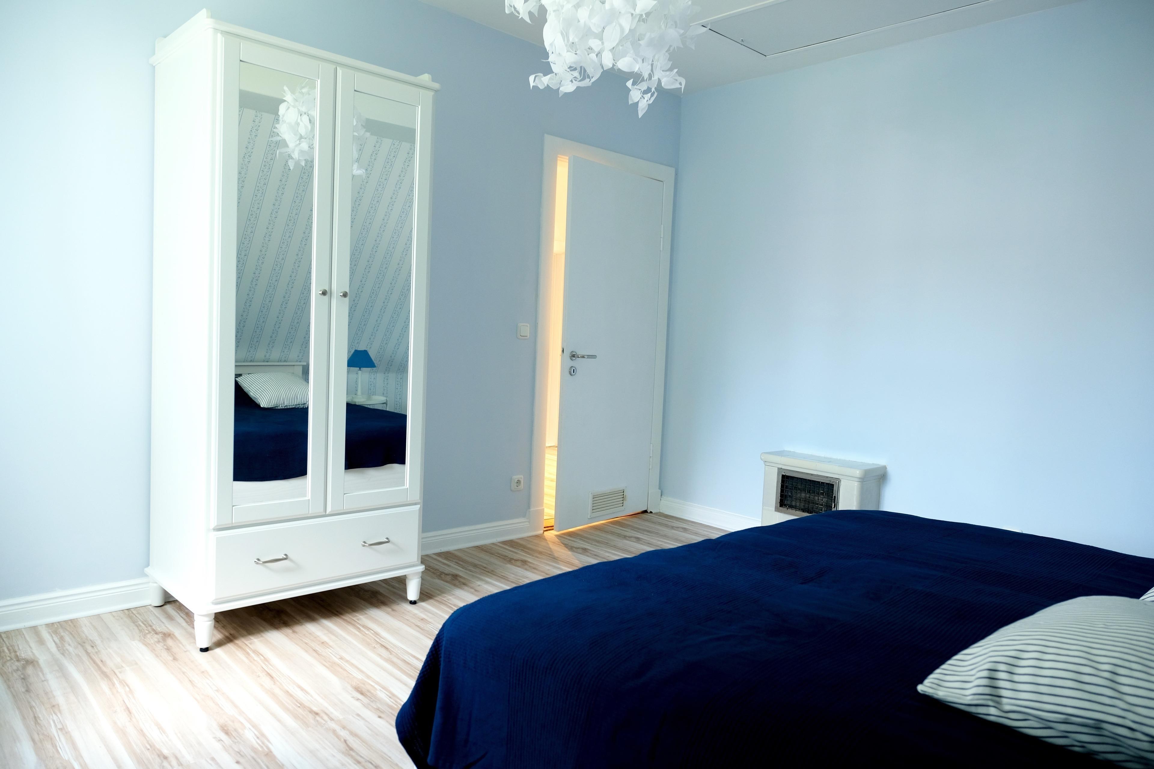 Von der Küche aus gelangt man über einen Hinterausgang direkt in den Garten. Das große Schlafzimmer im EG hat ein großes bequemes DB, Nachttische, Leselampen, Schreibtisch, bequem Stühle, Kommode, Kleiderschrank und ist vollständig abdunkelbar. Das schöne Tageslichtbad im EG ist mit WC, Waschtisch und begehbarer Dusche ausgestattet.