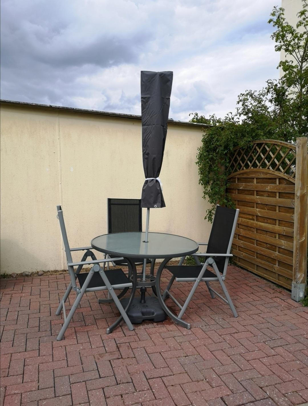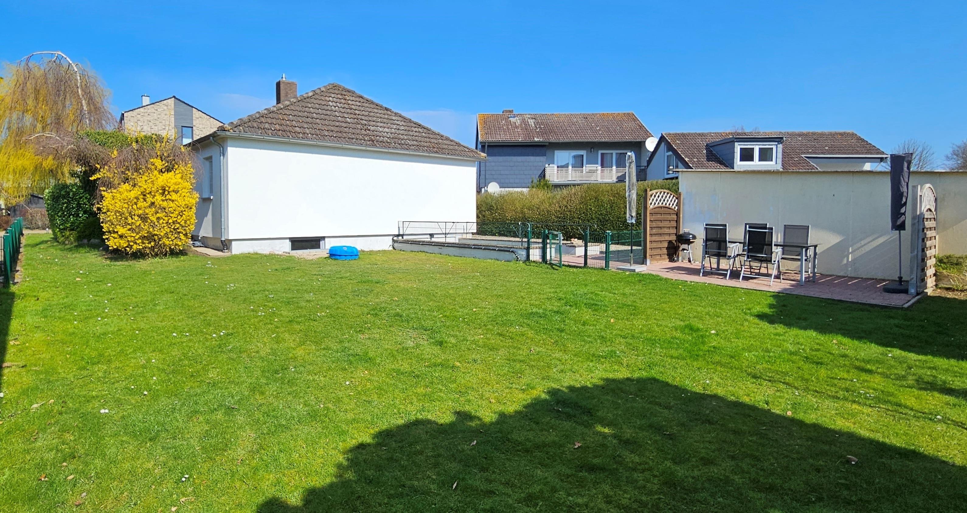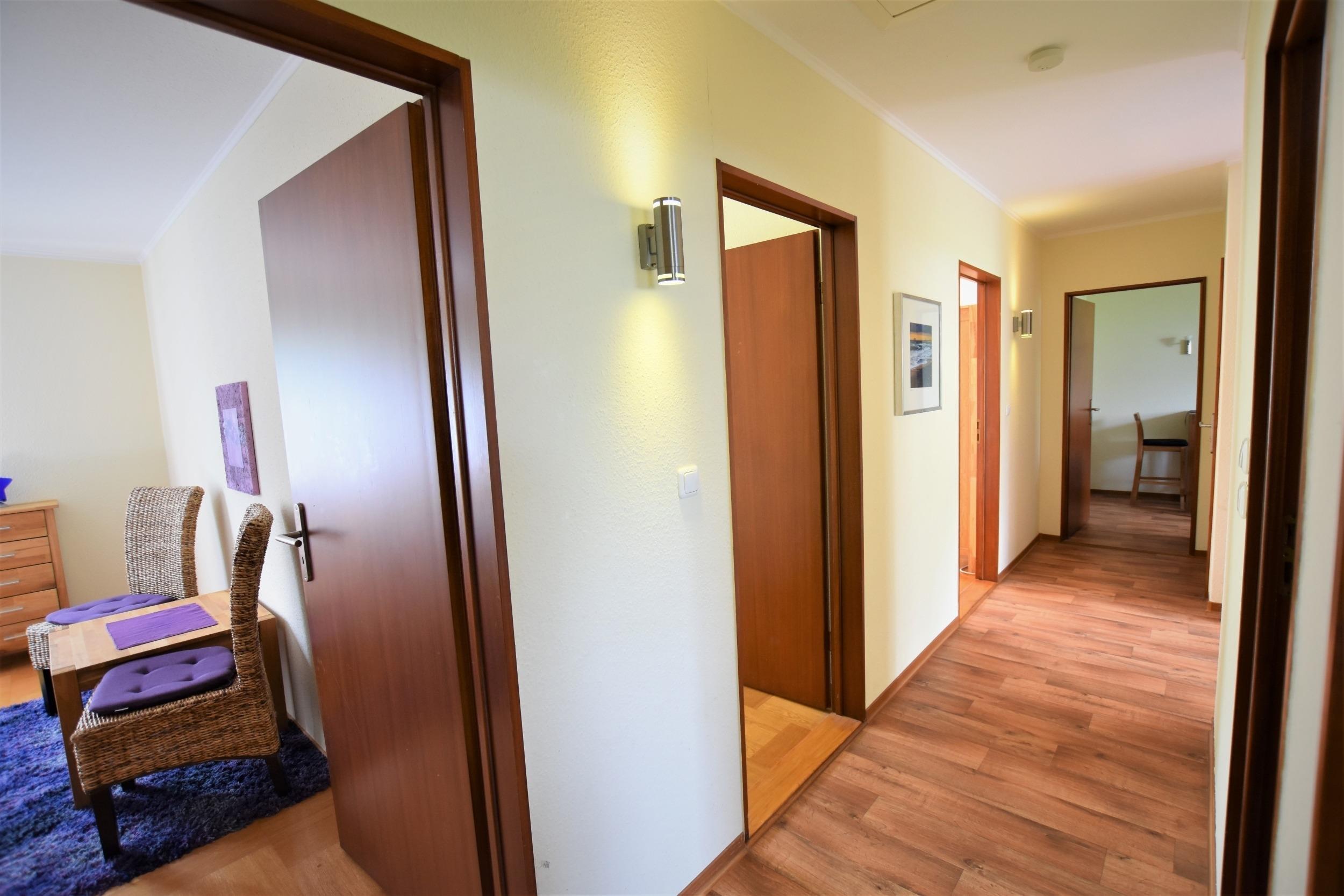 Vorflur mit Abstellnische, Flur mit Garderobe, großes Duschbad mit flacher Dusche, WC, Waschbecken, Spiegelschrank, Fenster und Waschmaschine. Wohn-/Esszimmer mit Sofaecke, TV, Kommode und Esstisch mit 6 Stühlen. Küche mit toller Ausstattung und einem Bistrotisch inklusive 4 Stühlen. Vom lichtdurchfluteten Wohnzimmer haben Sie direkten Zugang zum großen eingezäunten Garten mit bestuhlter Südterrasse. Hier können Sie den Urlaub gemütlich ausklingen lassen. Schlafzimmer (1) mit Doppelbett (2 x 100 cm x 200 cm), Kleiderschrank, Tisch mit 2 Stühlen, USB-Steckdosen, Nachttischleuchten. Schlafzimmer (2) mit einem Einzelbett ( 80 cm x 200 cm), Kleiderschrank, Tisch mit Stuhl, Nachttischleuchten. Schlafzimmer (3) mit einem Doppelbett (2x 90 cm x 200 cm), Kleiderschrank, Relaxsessel mit Hocker, Nachttischleuchten.