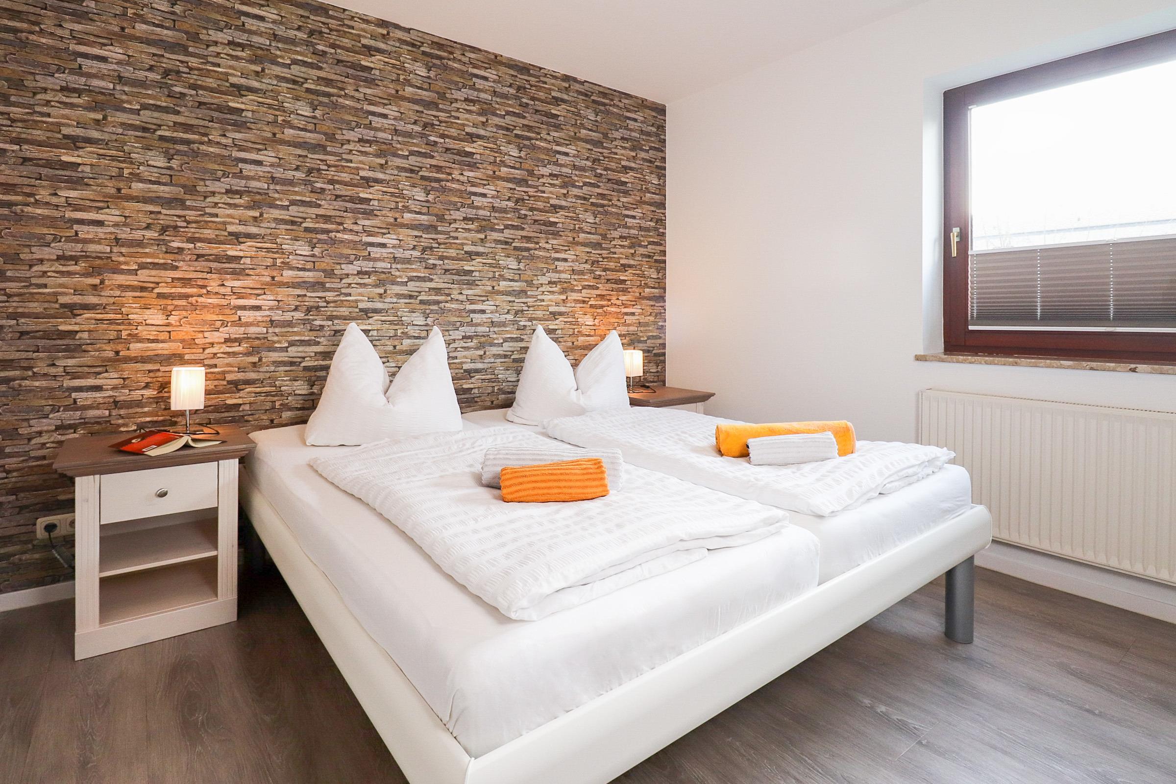 Das separate Schlafzimmer ist mit Doppelbett (2 Matratzen a' 90 x 200 cm) ausgestattet.