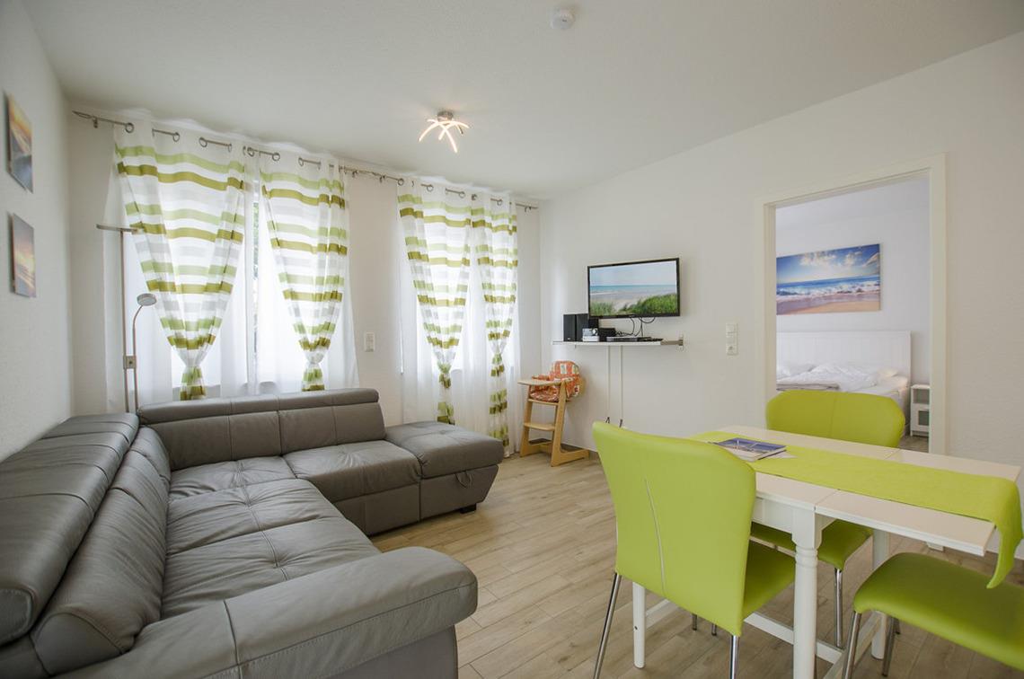 In dieser modern eingerichteten Ferienwohnung haben 4 Erwachsene auf 63m² genügend Platz.