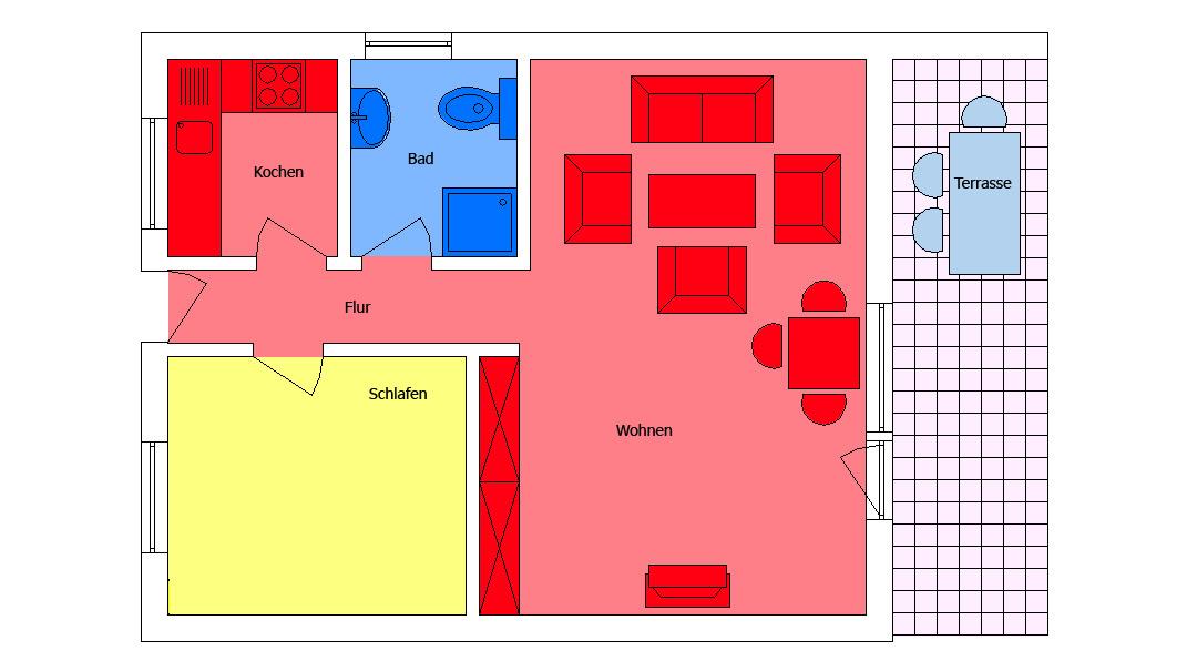 In dieser Ferienwohnung haben 4 Erwachsene Platz.