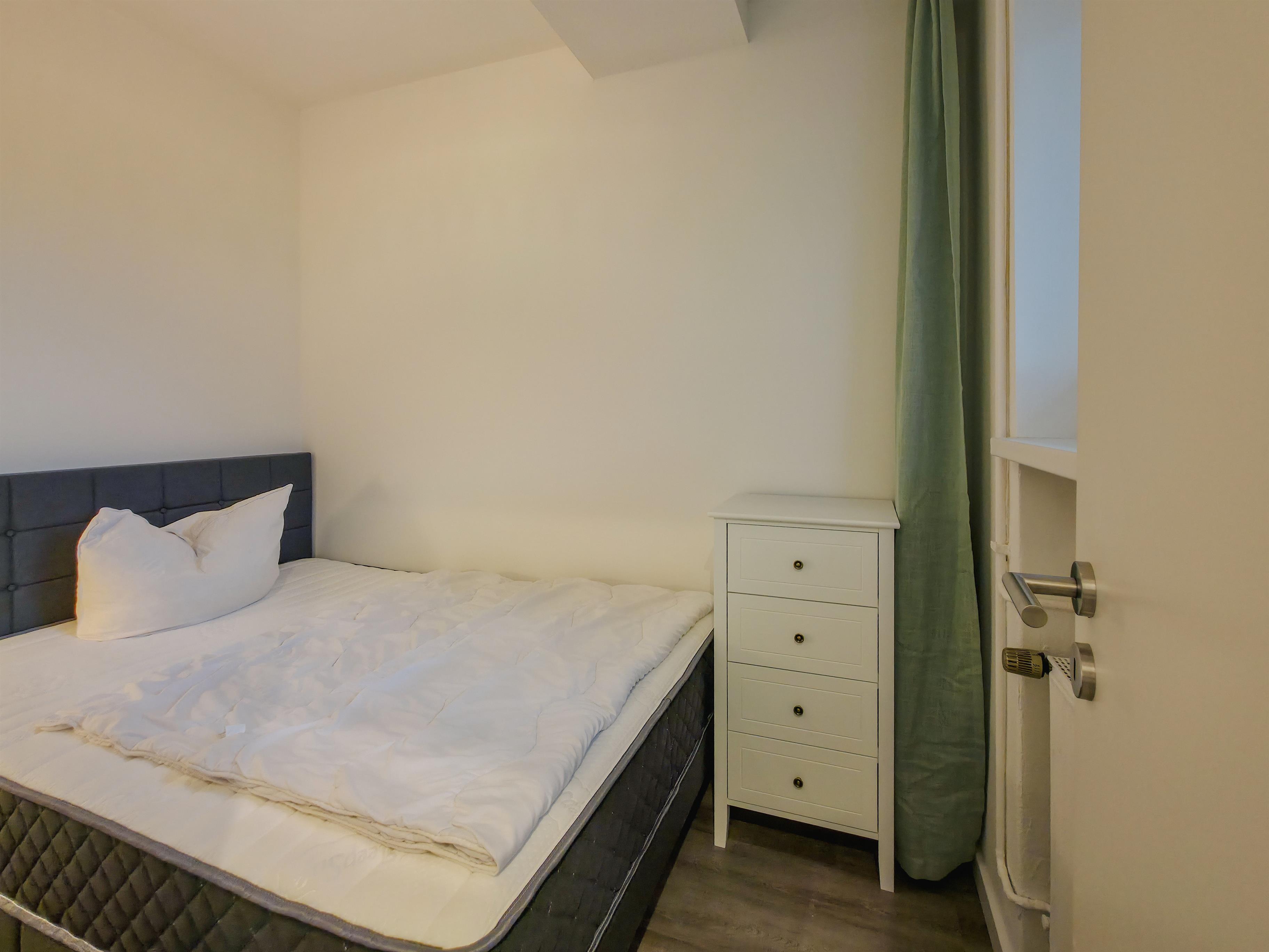 Besucher finden zudem ein separates, "kleines" Schlafzimmer mit zwei Einzelbetten und einer Kommode mit Schubladen sowie zwei Nachttischen mit Lampe vor.