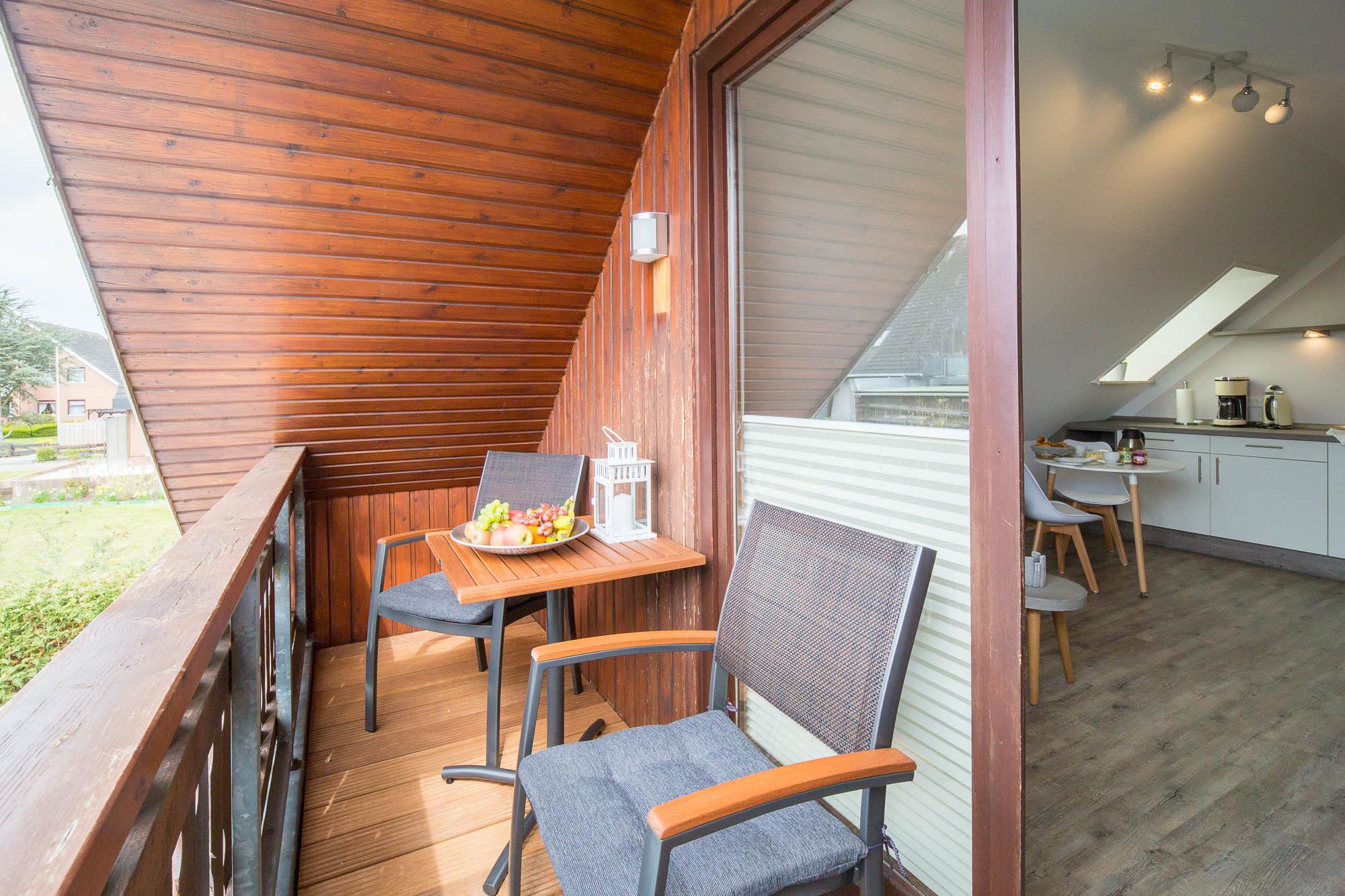 Die modern eingerichtete Ferienwohnung bietet auf 43m² ausreichend Platz für zwei Personen. Auf dem Balkon können Sie z.B. nach einem Strandtag, einer Wanderung oder einer Fahrradtour entspannte Stunden in der Nachmittagssonne verbringen.