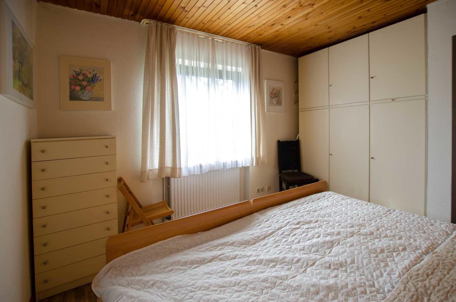 Das erste Schlafzimmer ist mit Doppelbett und Schrank ausgestattet.