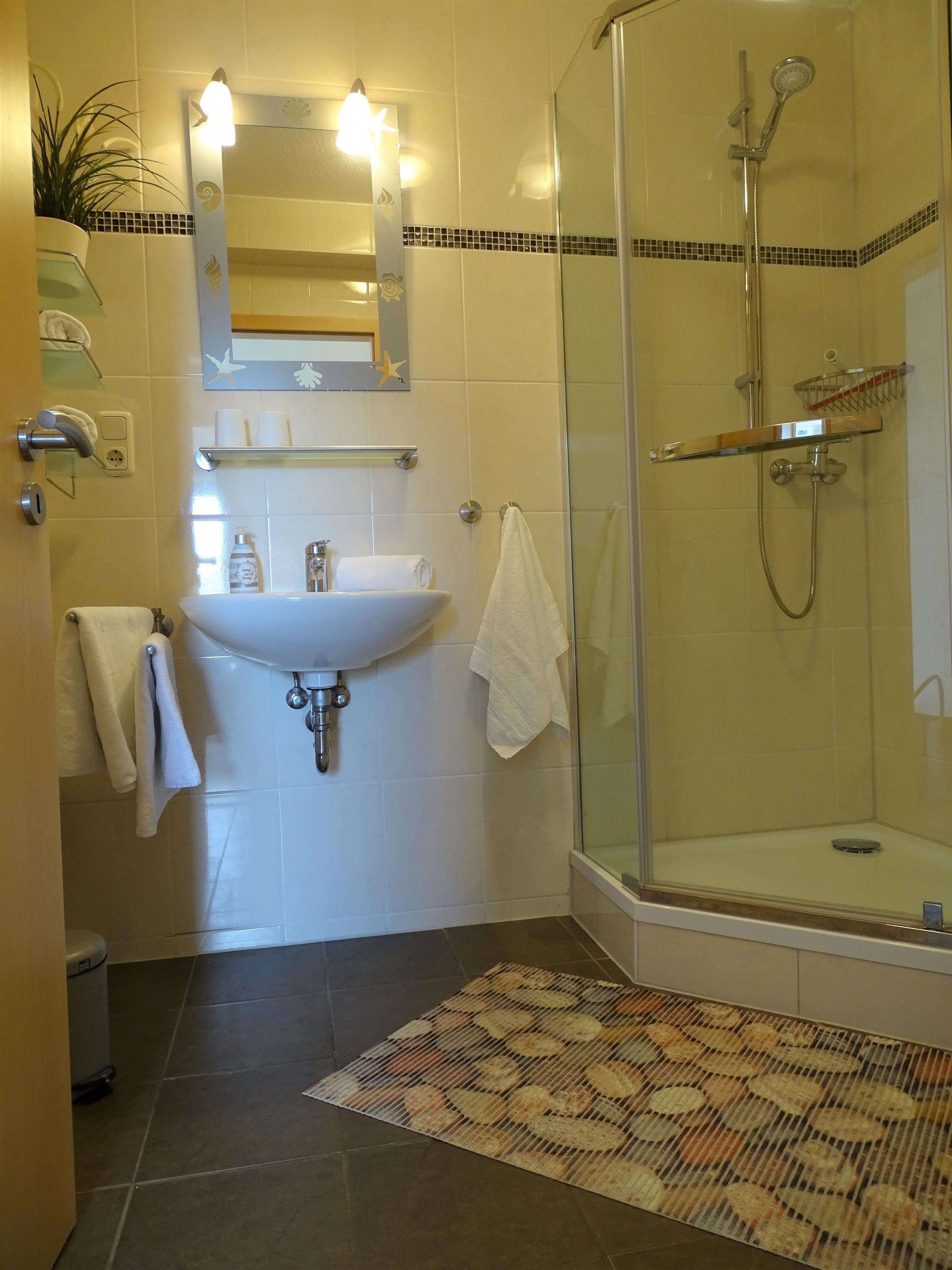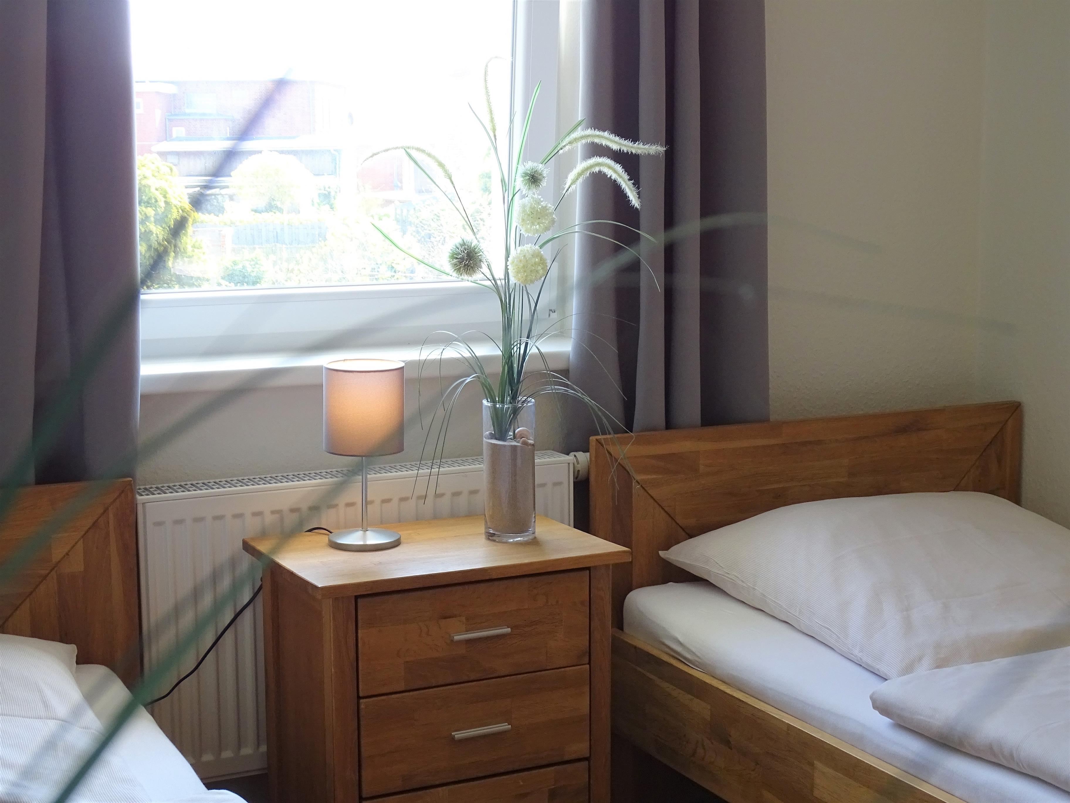Unsere schöne und geräumige Ferienwohnung (ca.64m²) in ruhiger, strandnaher Lage ist ausgestattet für 4 Personen und verfügt über 2 separate Schlafzimmer. Sie befindet sich im 1. Obergeschoss des einladenden Hauses...Sie bietet ein modernes Wohnzimmer mit Couch- und Essecke, SAT-Flachbild-TV und integrierte offene Küchenzeile. Die Einbauküche ist mit Geschirrspüler, Backofen, Ceranfeld, Mikrowelle, Kaffeemaschine, Toaster uvm. ausgestattet... Die Schlafzimmer (einmal mit Doppelbett und eines mit getrennt stehenden Einzelbetten) sind gemütlich eingerichtet. Das Duschbad ist hell und geräumig. Genießen Sie Ihre Urlaubsstunden auch auf dem sonnigen Balkon...