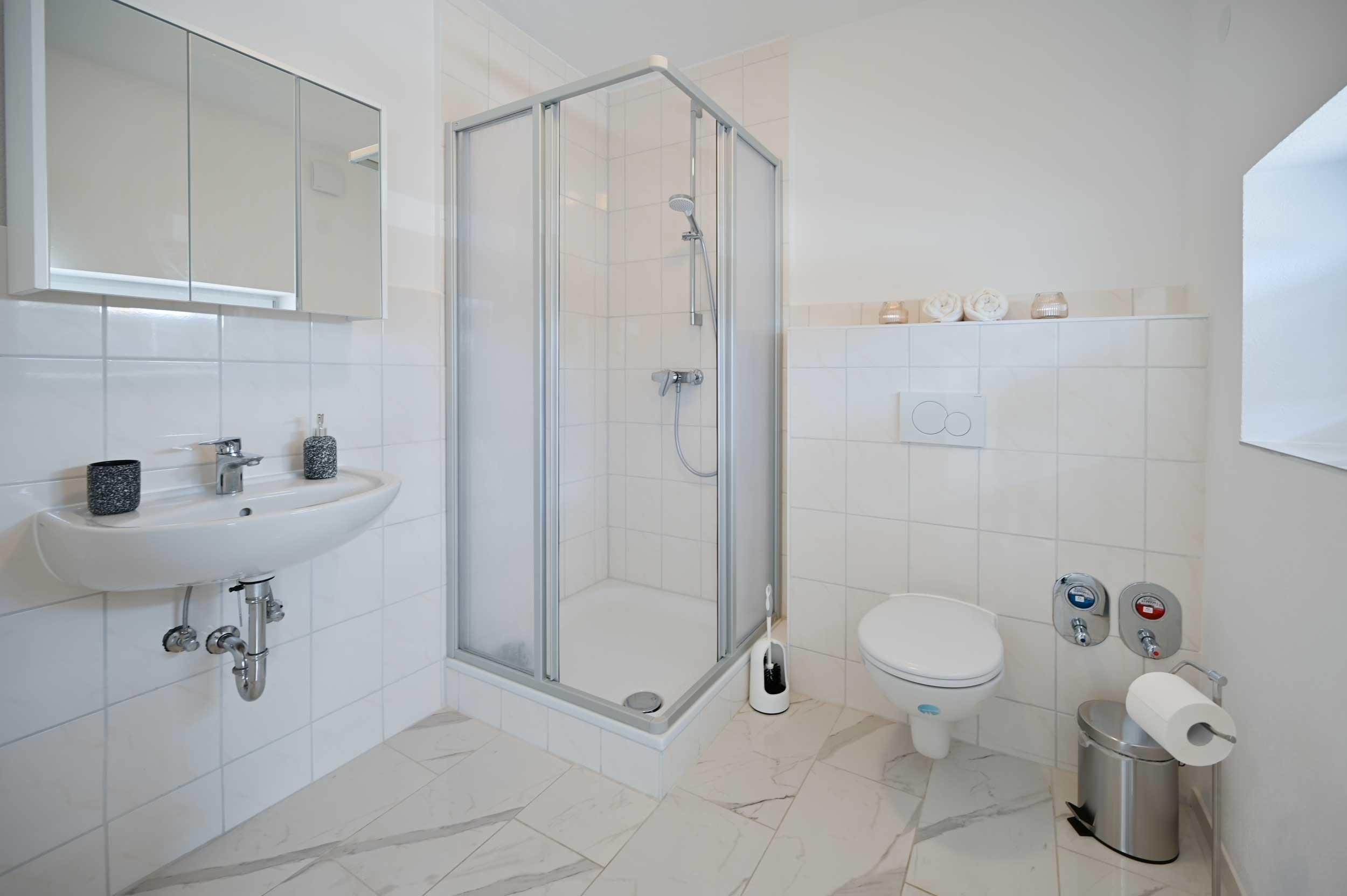 Bad mit Dusche und WC.