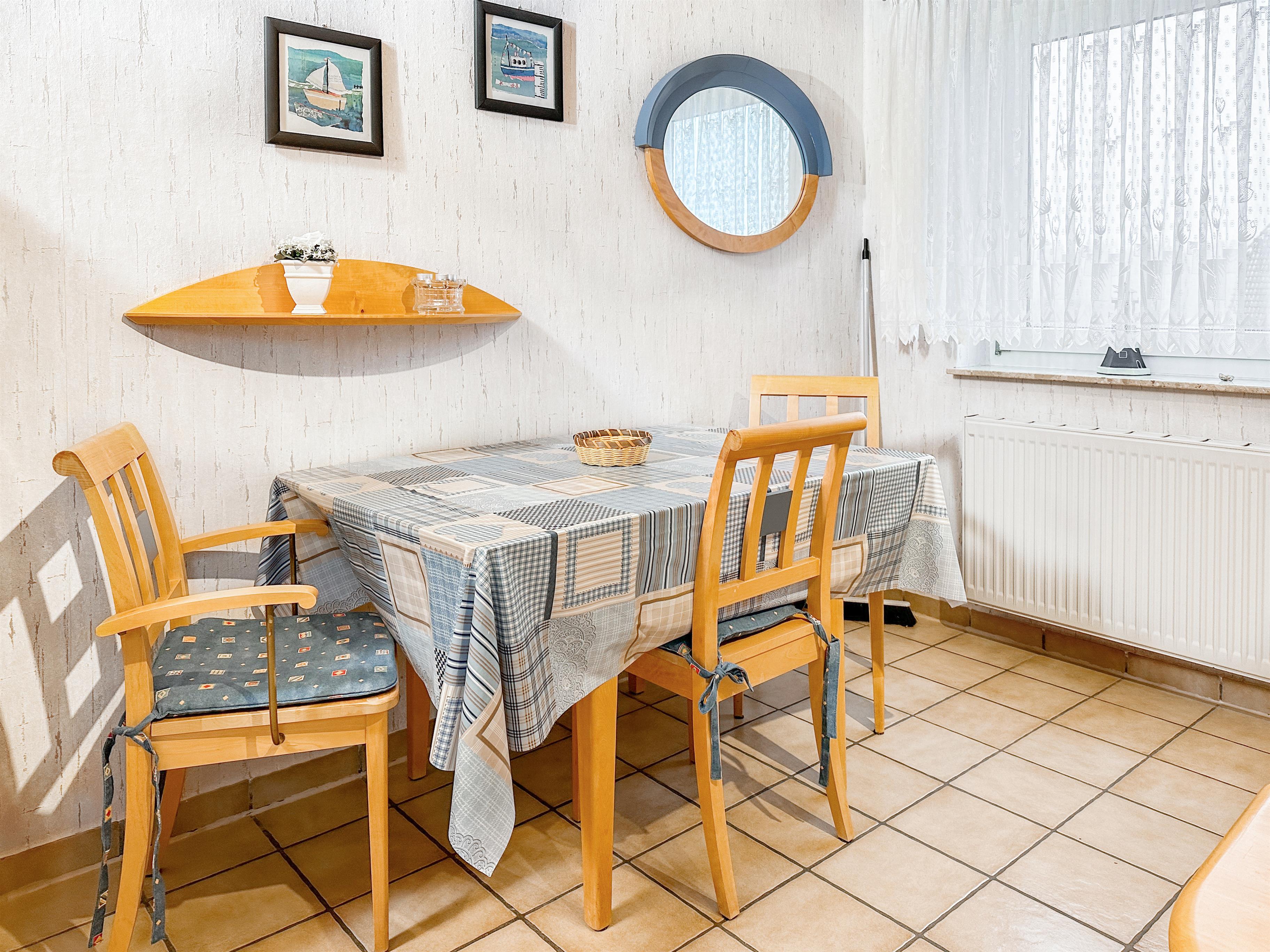 Wir wünschen Ihnen schon jetzt einen schönen Urlaub in Kellenhusen an der Ostsee. Hier erwarten Sie auf ca. 54 m² eine Obergeschoss Ferienwohnung mit zwei Schlafzimmern, ein Badezimmer, einer Küche und ein Wohn-/Esszimmer.