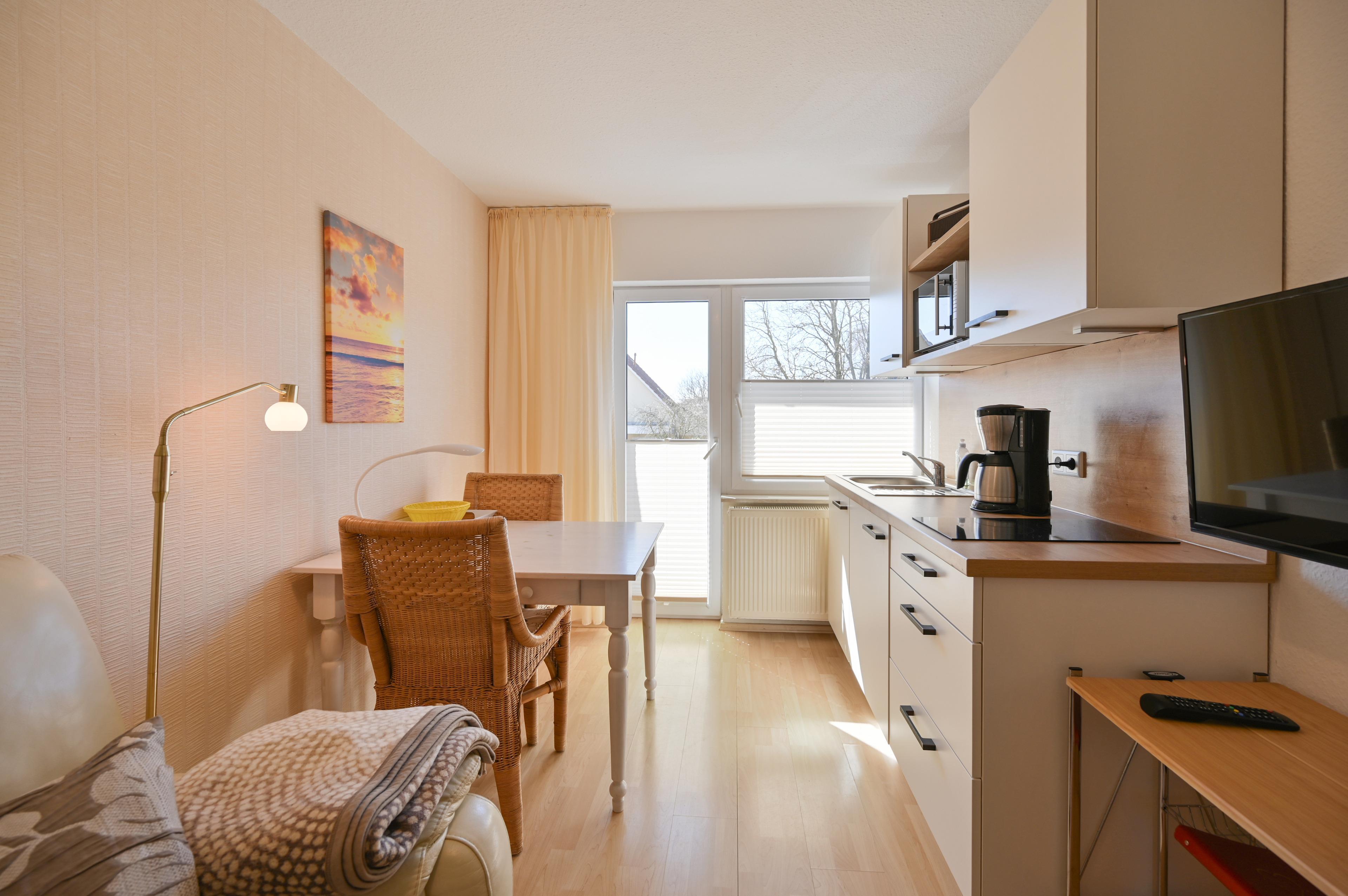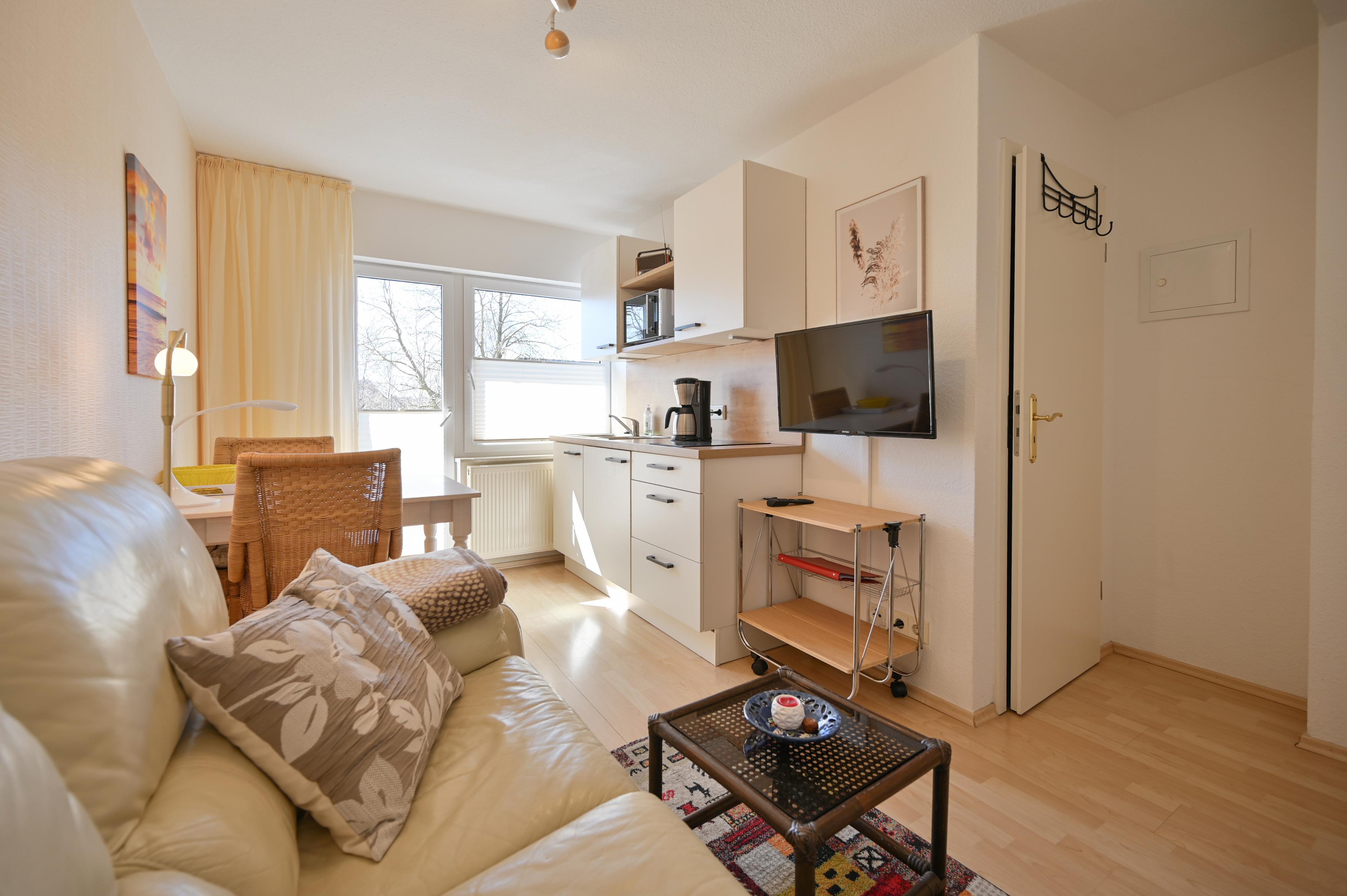 Helle, strandnahe 2-Raum-Ferienwohnung für 2 Personen und einen Hund im Kurbad Kellenhusen an der Ostsee.