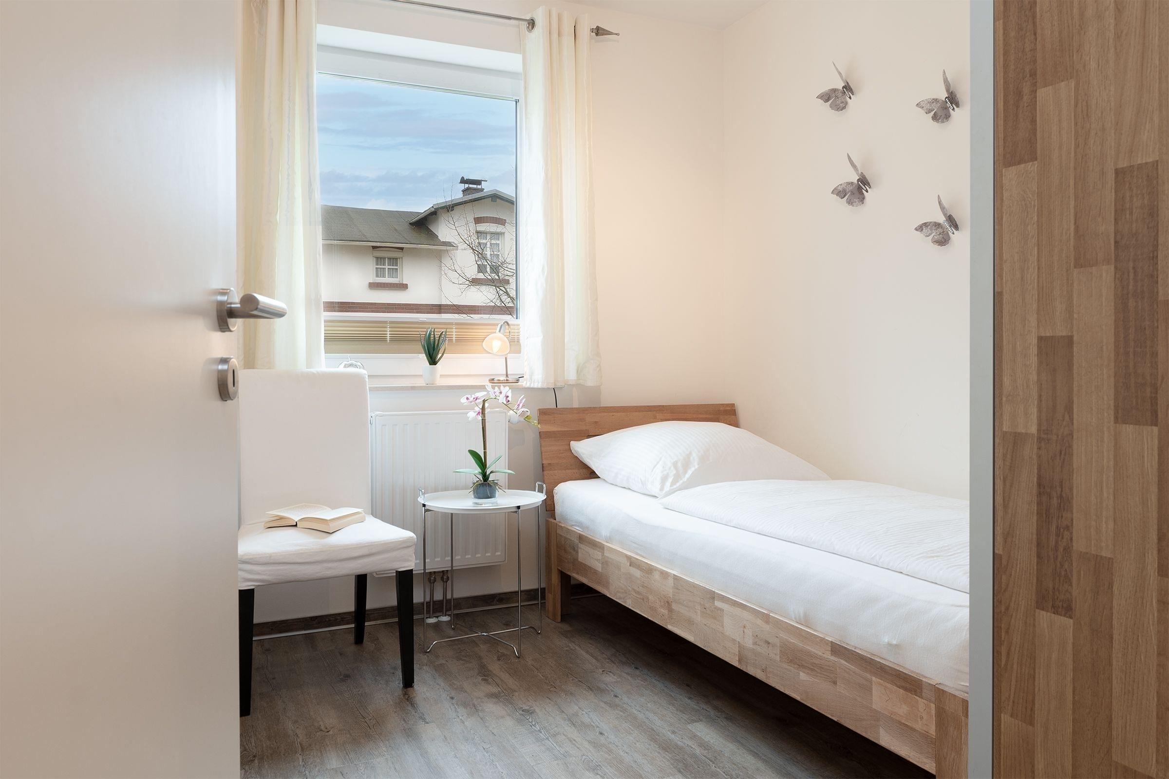 Schlafzimmer 2: 2 Einzelbetten (2x 90x200 cm), Verdunkelung (Plissees)