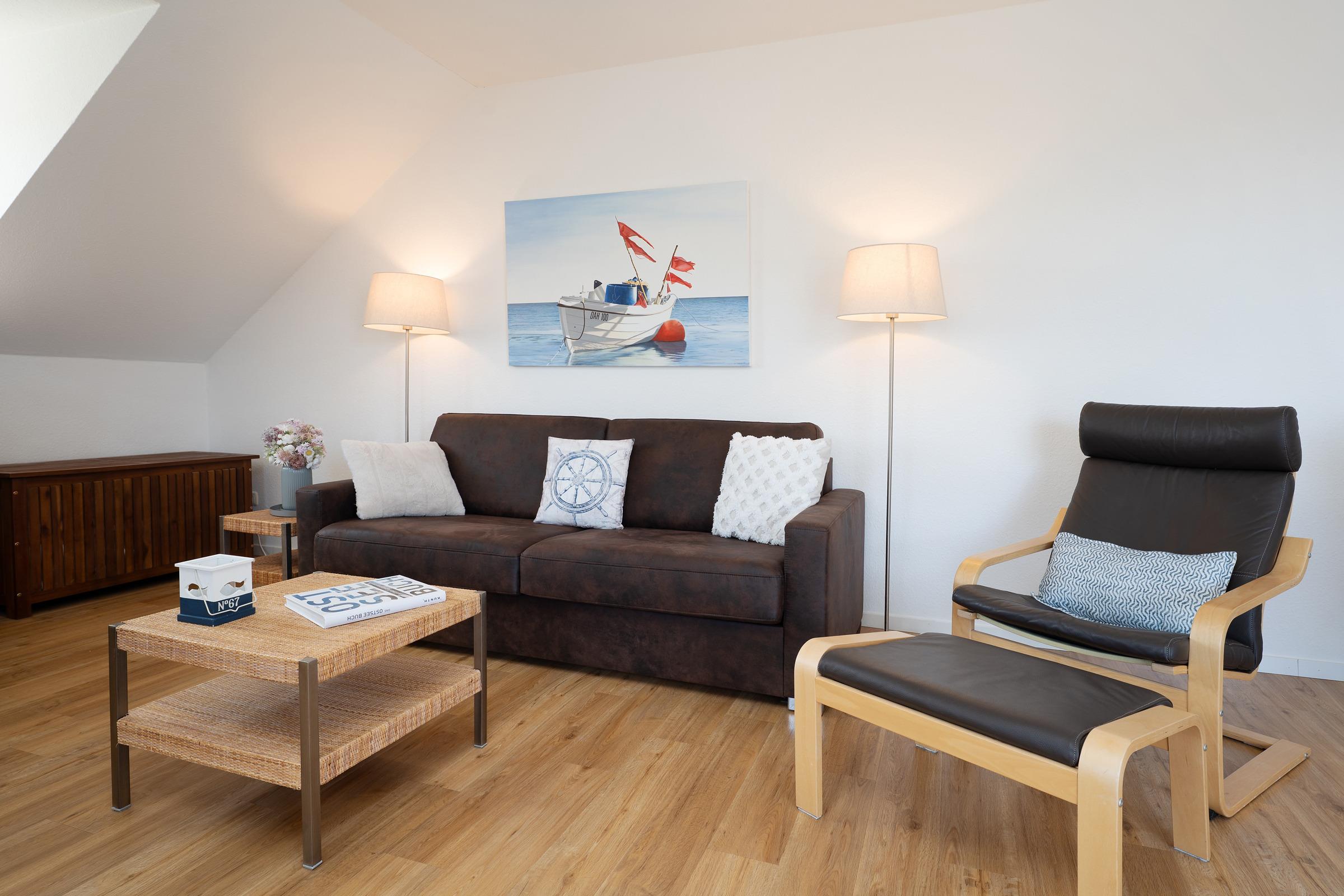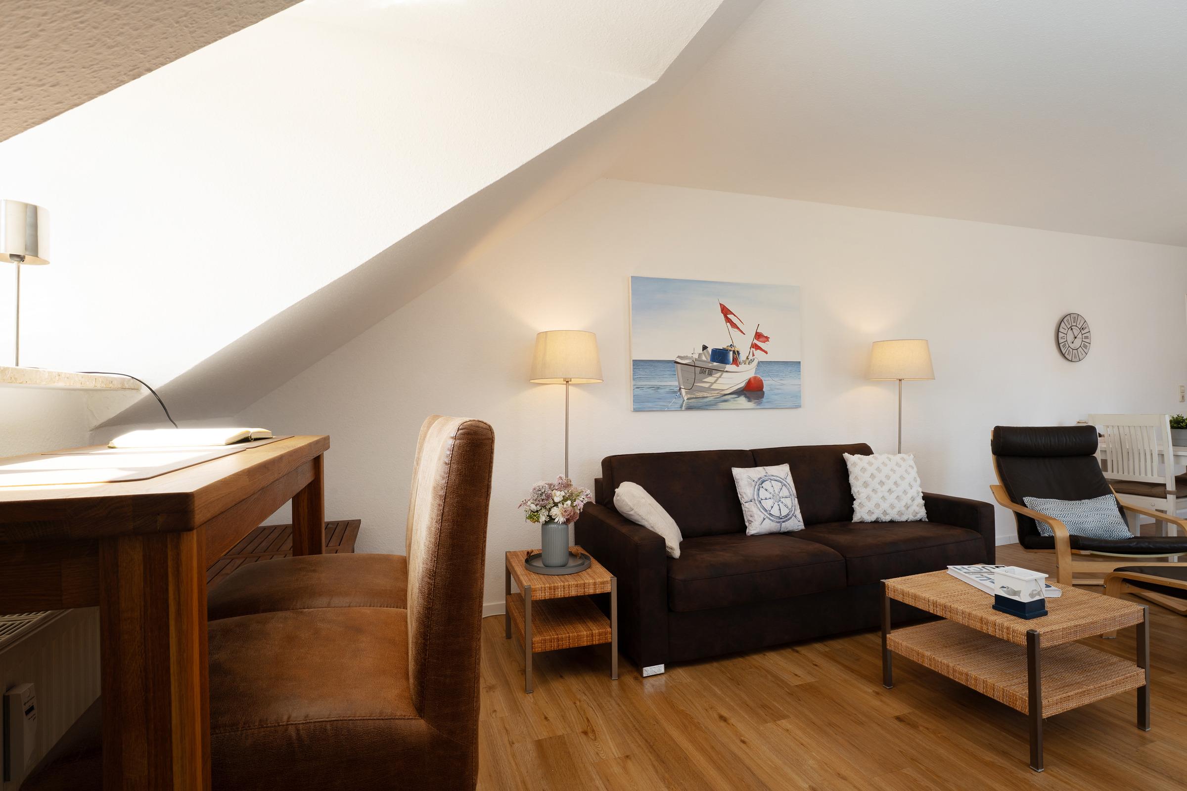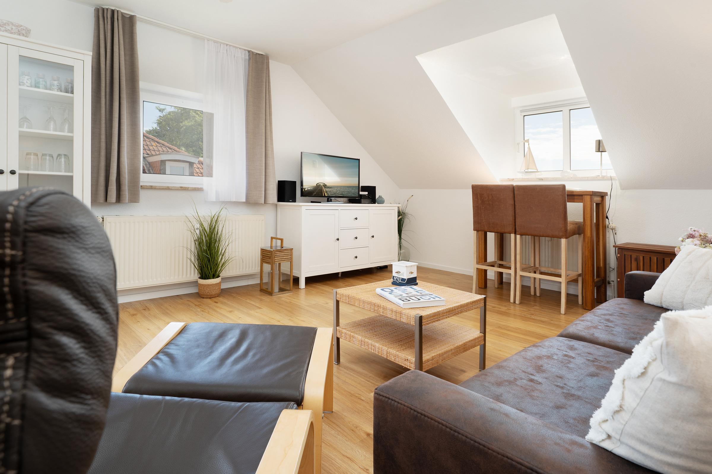 Traum-Lage: Schicke 2-Zimmer-Ferienwohnung in der 1. Reihe zur Ostsee in Kellenhusen für bis zu 4 Personen im Dachgeschoss (2. Stock) mit Balkon, einer Wohnfläche von ca. 49 m² – und Meerblick.
