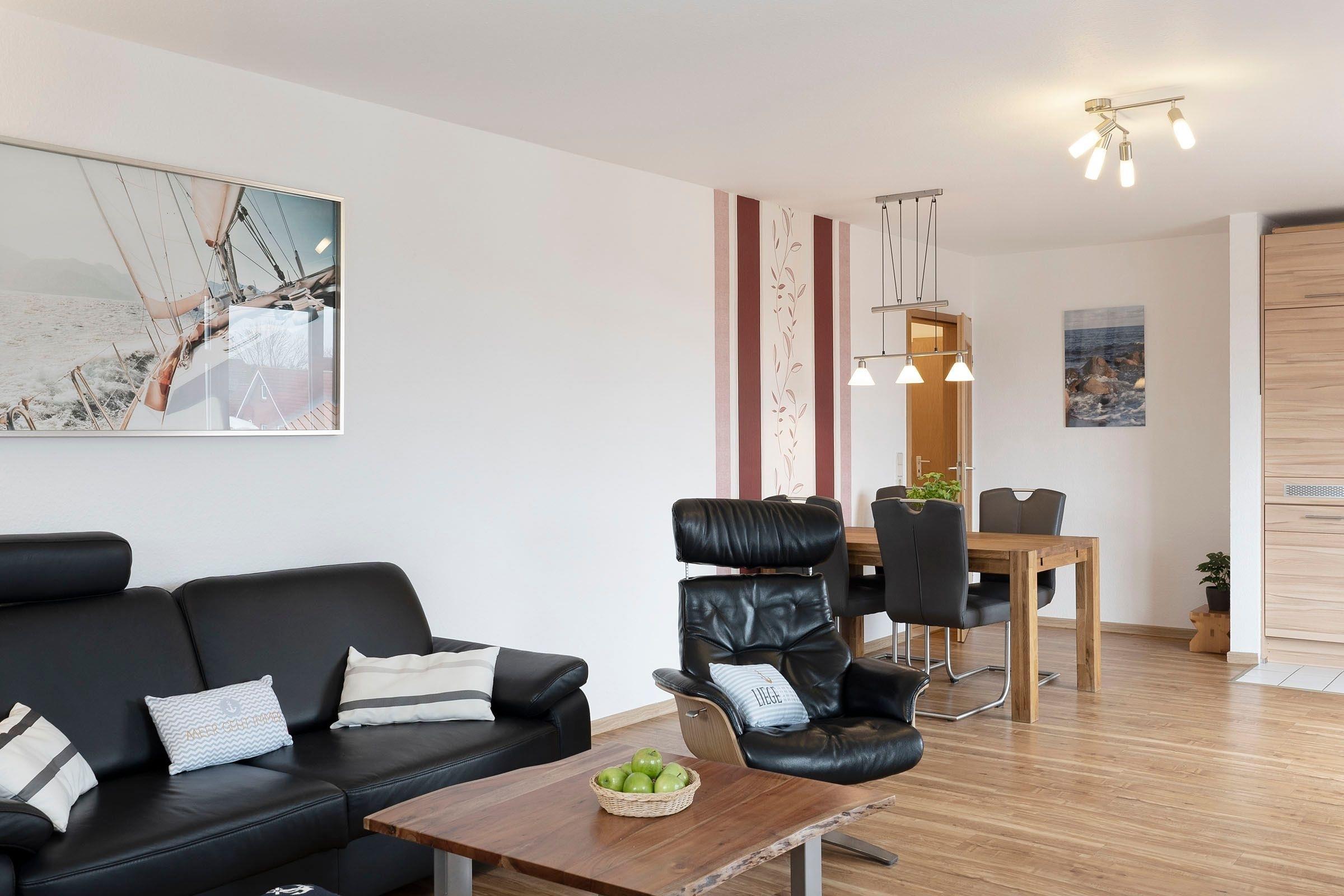 Wie wäre es, wenn Sie von Ihrem Balkon aus die Ostseeluft schnuppern könnten? Die traumhafte Ferienwohnung Eismöwe im gepflegten Wohnpark Kaiserhof ist nur rund 100 Meter vom Strand entfernt und bietet ideale Voraussetzungen für einen gelungenen Ostsee-Urlaub. Die geschmackvolle Einrichtung in Holz-Optik verleiht dem Wohn-/Ess-Bereich eine besondere Atmosphäre. Kommen Sie herein und nehmen Sie auf dem schicken Sofa oder dem bequemen Sessel Platz. Hier können Sie vor dem TV-Gerät herrlich entspannen. Direkt am Fenster befindet sich ein kleiner Tresen für zwei - das wird bestimmt Ihr neuer Lieblingsplatz. Zusätzlich steht Ihnen noch eine gemütliche Ess-Ecke zur Verfügung. Die moderne, in den Wohnraum integrierte Küche bietet sämtliche Annehmlichkeiten, die sich ein Hobby-Koch im Urlaub wünscht. Direkt daneben haben Sie Zutritt auf den möblierten Balkon. Wie wäre es hier mit einem guten Buch in der Morgensonne oder einem Glas Wein am Abend? Angenehme Nachtruhe finden Sie in dem komfortablen Doppelbett (2x 90x200 cm) im großzügigen Schlafzimmer. Das helle, moderne Duschbad mit Dachfenster verspricht einen guten Start in den Tag.