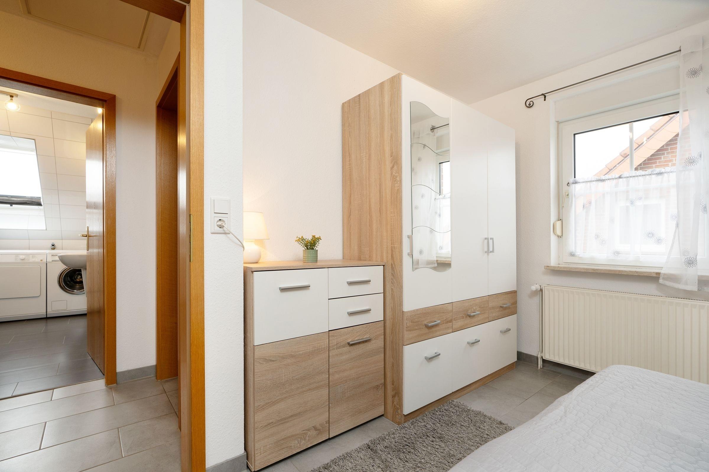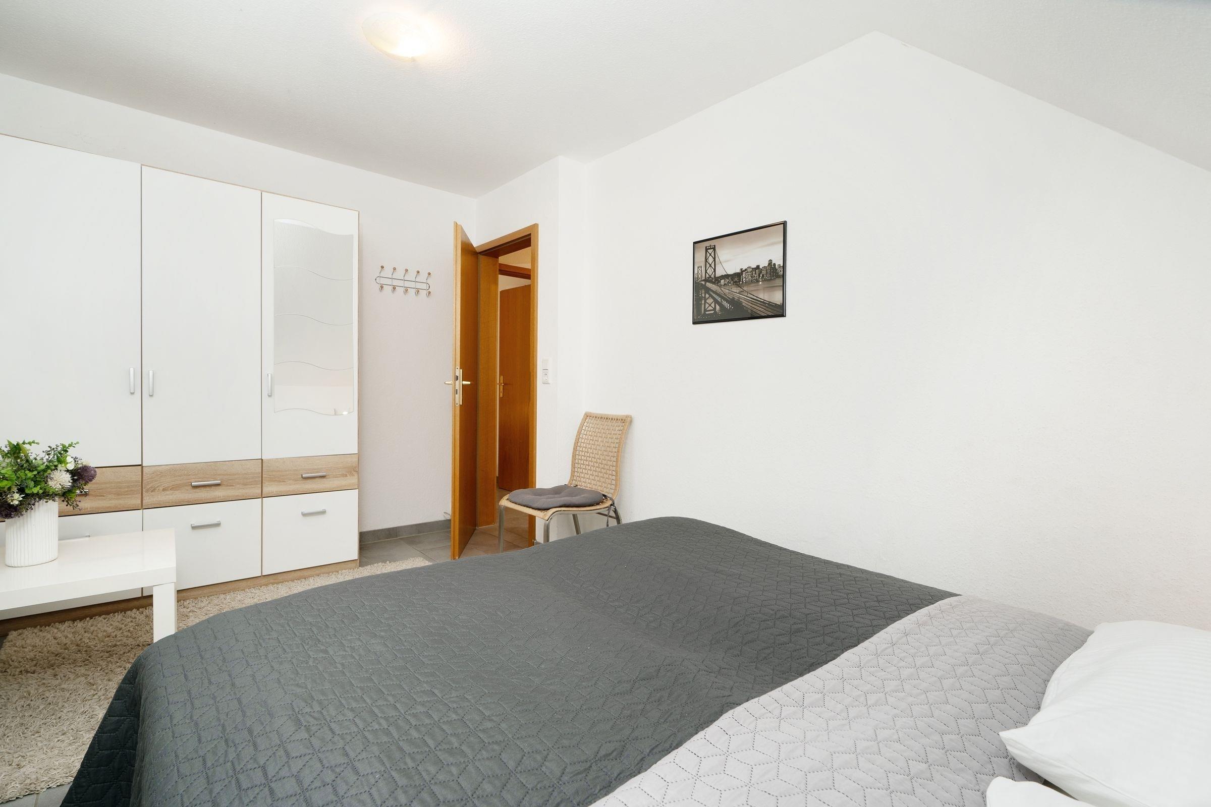 Schlafzimmer 1: 1 Doppelbett (2x 80x200 cm), Kleiderschrank, Verdunkelungsmöglichkeit (Außenrollläden)
