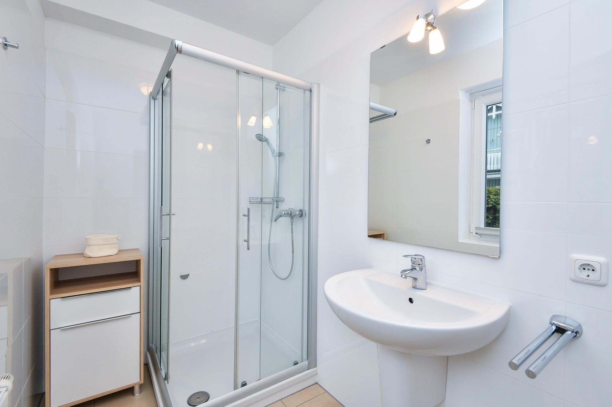 Das Ferienhaus Bootsmann empfängt Sie mit moderner, ansprechender Ausstattung. Im offenen Wohn-, Ess- und Kochbereich verbringen Sie entspannte Stunden auf der einladenden Sofalandschaft oder lassen sich am Esstisch die selbst zubereiteten Mahlzeiten schmecken. Mit einem spannenden Buch können Sie es sich auf der sonnigen, möblierten Terrasse bequem machen. Im Obergeschoss schlafen Sie im Hauptschlafzimmer in einem komfortablen Doppelbett (2x 90x200 cm). Im Kleiderschrank verstauen Sie Ihre Urlaubsgarderobe. Im zweiten Schlafzimmer tanken Sie in 2 Einzelbetten (2x 90x200 cm) neue Energie. Um Stress am Morgen zu vermeiden, gibt es im Erd- und im Obergeschoss jeweils ein Duschbad mit Tageslicht. In den beiden Bädern und im Wohnzimmer sorgt eine Fußbodenheizung für wohlige Wärme. Außerdem genießen Sie dank Entkalkungsanlage im ganzen Haus weiches Wasser.