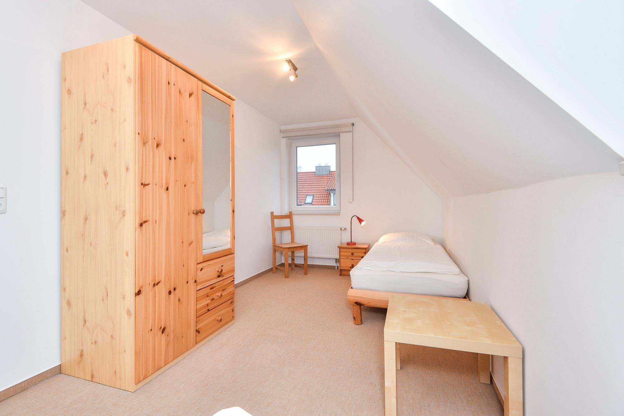 Schlafzimmer 2: 2 Einzelbetten (2x 90x200 cm), Kleiderschrank, Verdunkelung (Rollos)