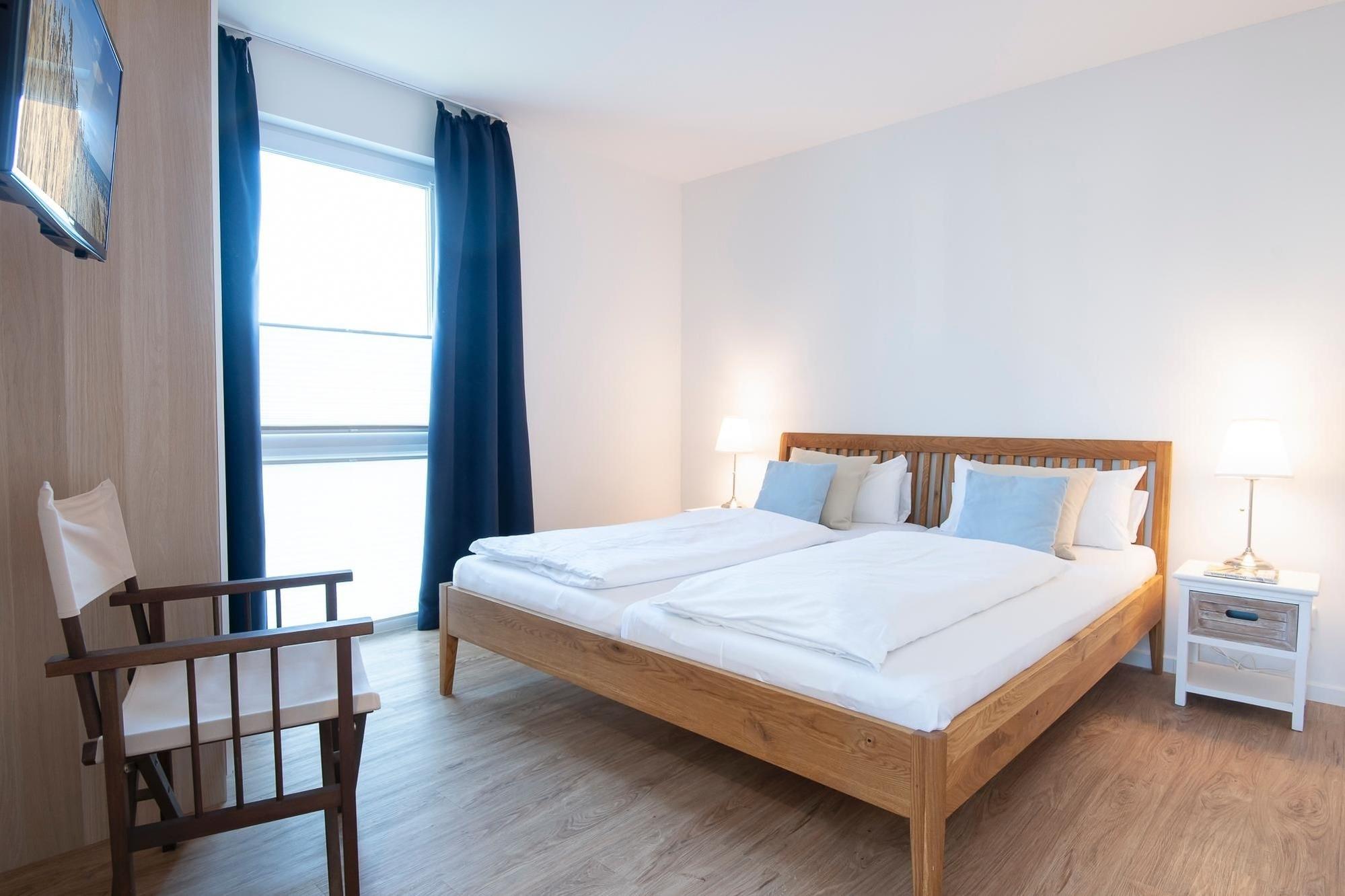 Schlafzimmer 1: 1 Doppelbett (2x 90x200 cm), TV, Kleiderschrank, Verdunkelungsmöglichkeit