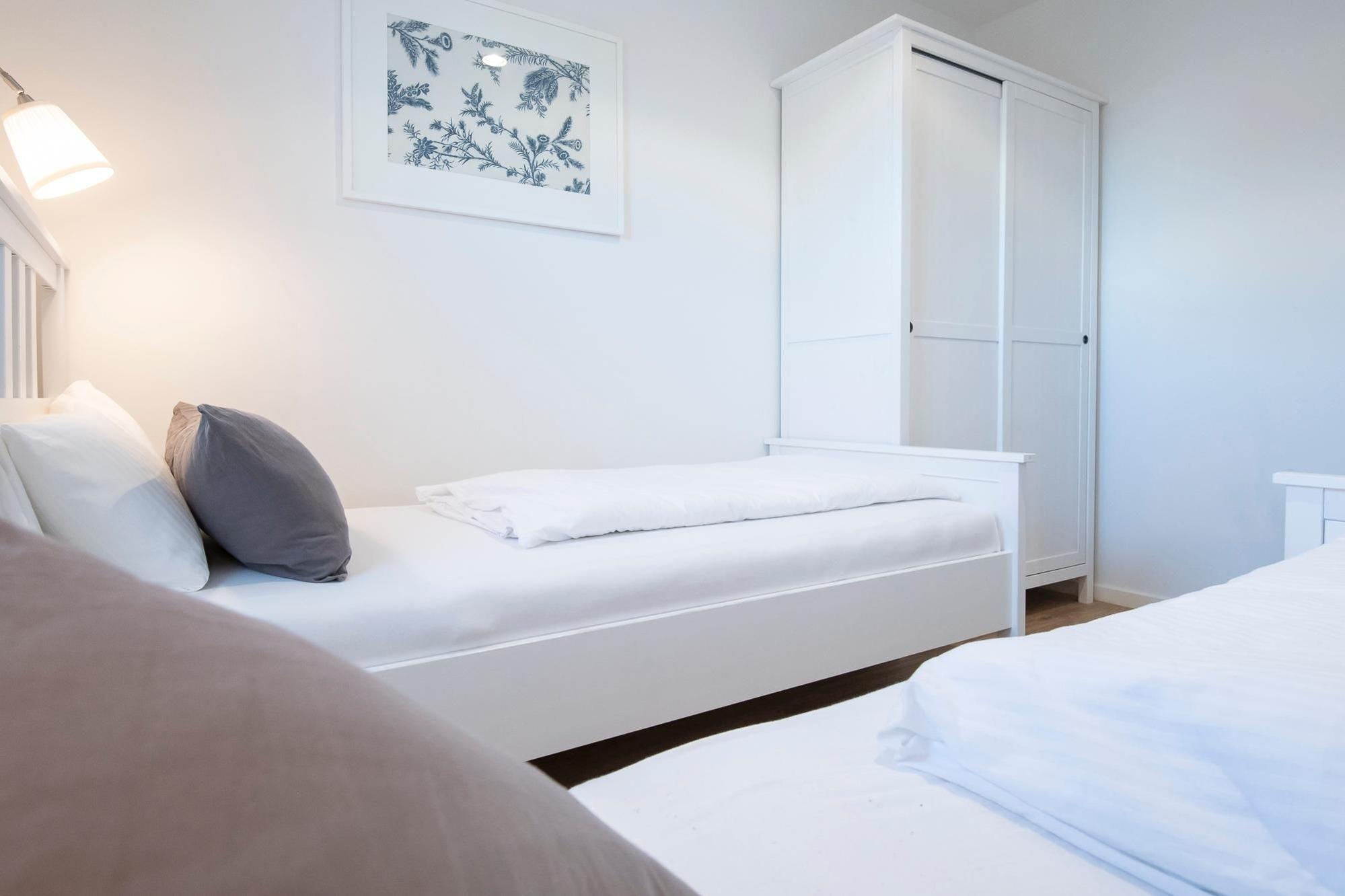 Schlafzimmer 2: 2 Einzelbetten (je 90x200 cm), Kleiderschrank, Verdunkelungsmöglichkeit