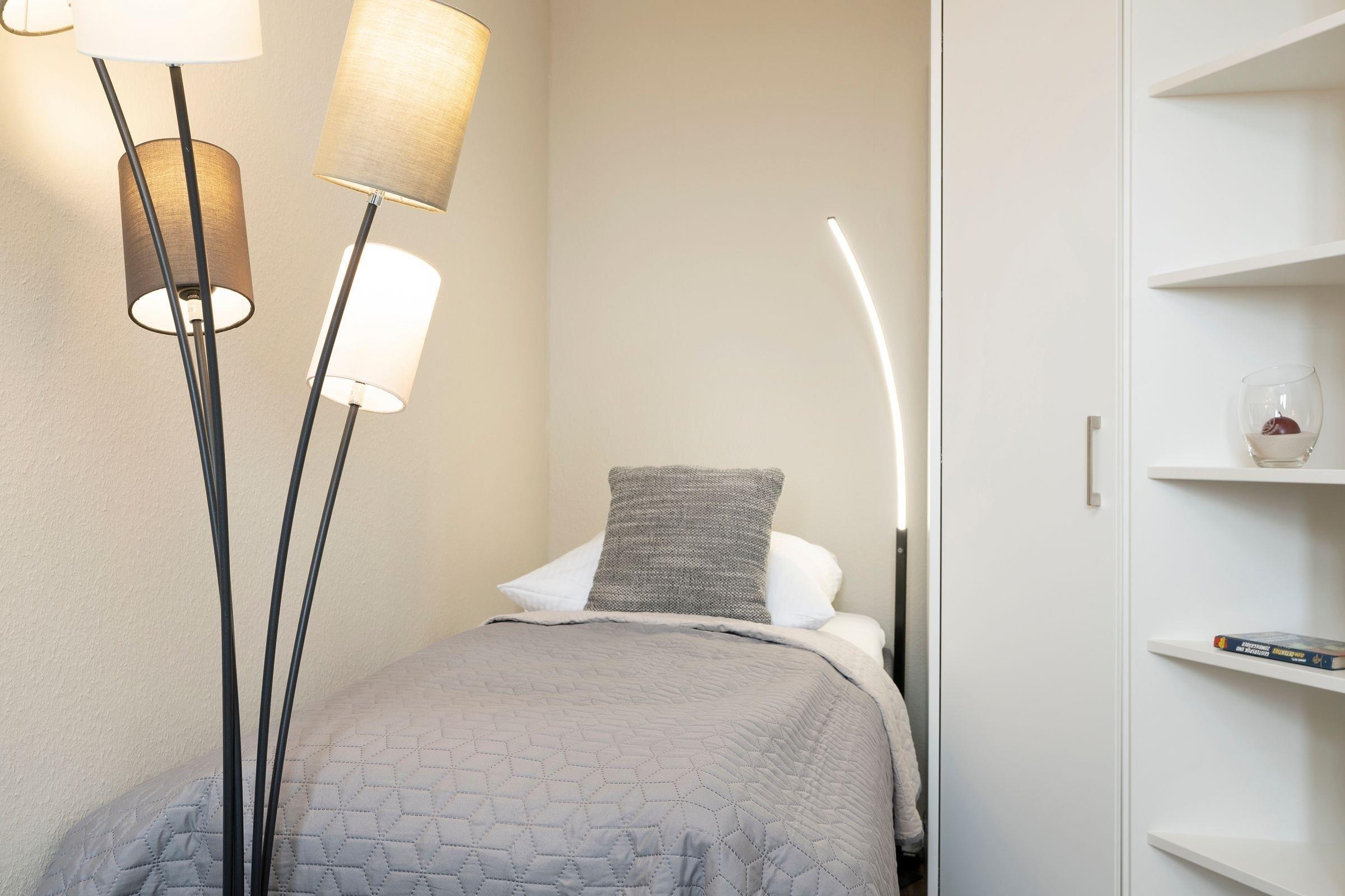 Wohn/ Schlafraum: 2 Einzelbetten (2x 90x200 cm), Verdunkelung (Vorhänge)