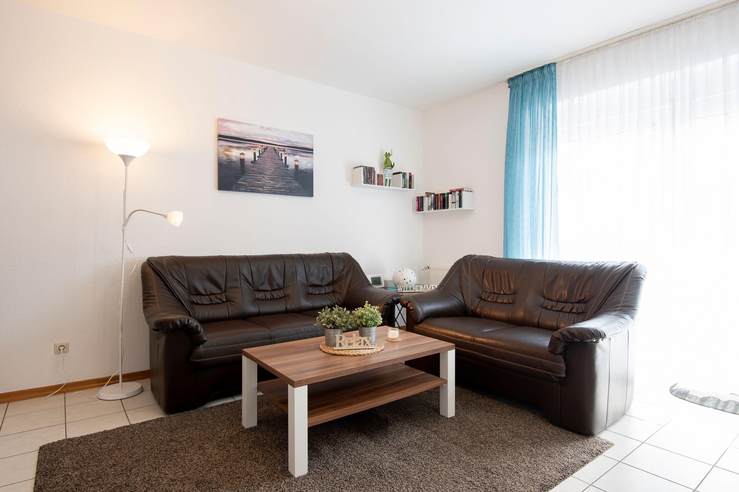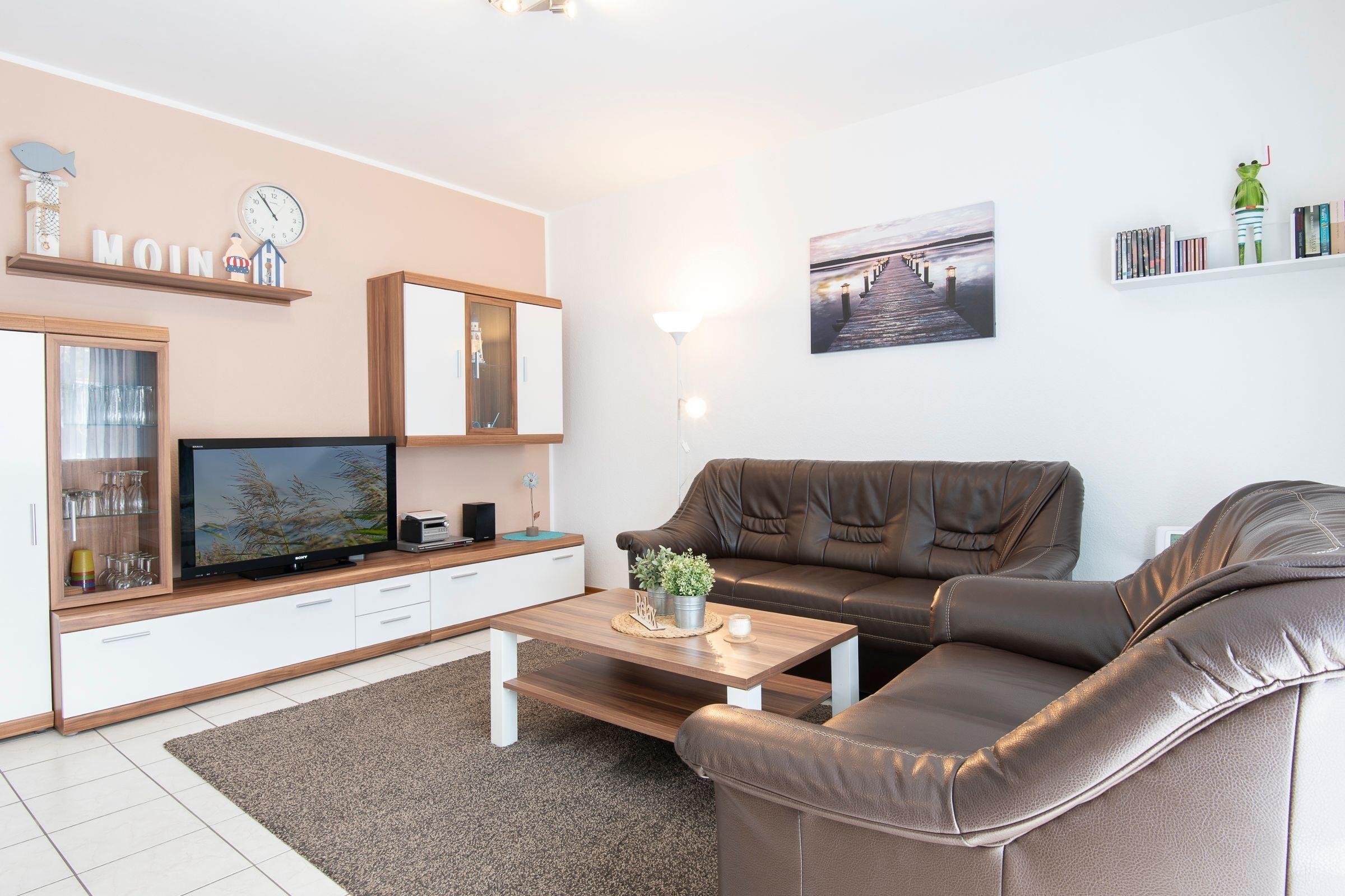 Schön zentral im Lindenbuschen 1 finden Sie Ihr Zuhause auf Zeit mit einem eigenen Zugang. Das schöne Wohnzimmer begrüßt Sie mit einer gemütlichen Couchecke vor dem TV-Gerät sowie einem netten Essplatz. Das Highlight ist sicher die Terrasse mit Strandkorb - genießen Sie hier Ihre freie Zeit an der frischen Ostseeluft. Zurück im Wohnzimmer präsentiert sich im hinteren Bereich die moderne, offene Küche mit Spülmaschine. Eine erholsame Nacht versprechen zwei Schlafräume: In dem einen Zimmer steht ein Doppelbett (2x 90x200 cm), in dem anderen zwei Einzelbetten (je 90x200 cm). Auch ein weiteres TV-Gerät ist hier zu finden. Das innenliegende Duschbad ist hell gefliest. Die Wohnung ist mit Außenrollläden ausgestattet.