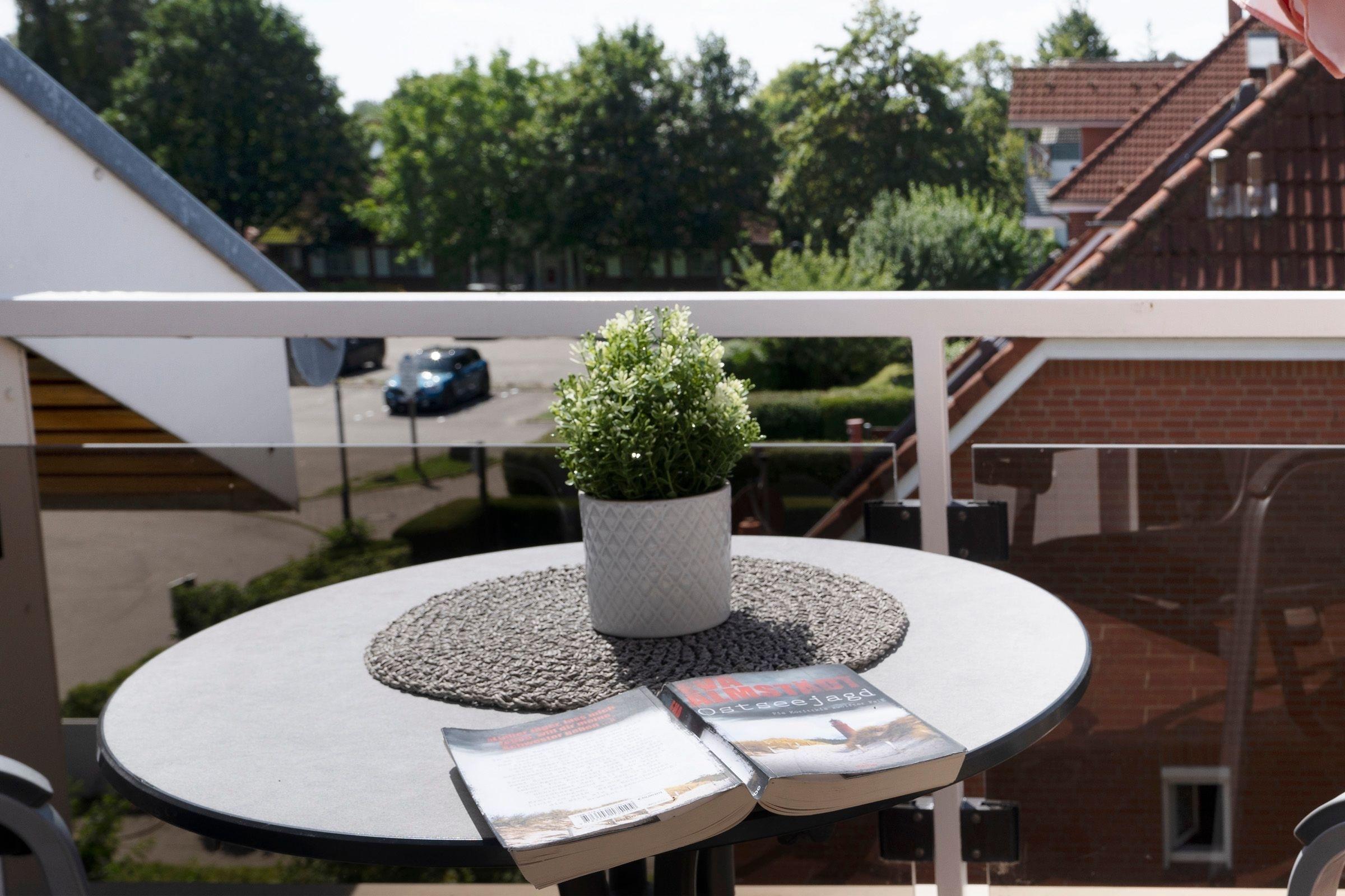 Klein und fein – ein schöner Ort zum Wohlfühlen. Die charmante Dachgeschosswohnung befindet sich im Apartmenthaus Im Sonnenwinkel und bietet auf kleinem Raum alles, was es für einen wunderbaren Urlaub braucht. Ein kuscheliges Sofa im Wohn-/Ess-Bereich empfängt Sie und verspricht Ihnen gemütliche Abende vor dem TV-Gerät. Bei schönem Wetter lockt natürlich der möblierte Balkon, der nach Süden ausgerichtet ist. Aber auch wenn die Sonne einmal nicht so lacht, sitzen Sie hier gut geschützt und können Ihre freie Zeit wunderbar genießen und entspannen. Das wird bestimmt Ihr neuer Lieblingsplatz. Wie wäre es hier mit einem guten Buch? Zurück im Wohnbereich präsentiert sich eine gut ausgestattete Küche – und in einer freundlichen Nische befindet sich eine kleine Ess-Ecke. Durch die Dachschrägen wirkt der Raum wunderbar gemütlich. Für die Nachtruhe geht es ins Schlafzimmer mit schicker Foto-Tapete. In dem Einzelbett (90x200 cm) werden Sie sicher gut nächtigen. In dem modernen Duschbad gleich um die Ecke können Sie perfekt in den Tag starten. Praktisch: Eine Waschmaschine und ein Trockner stehen Ihnen im Haus kostenfrei zur Verfügung.
